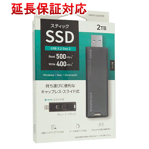 | I-O DATA USB 10Gbps(USB 3.2 Gen2)対応 スティックSSD SSPS-US2GRE グレー×ブラック 2TB | |