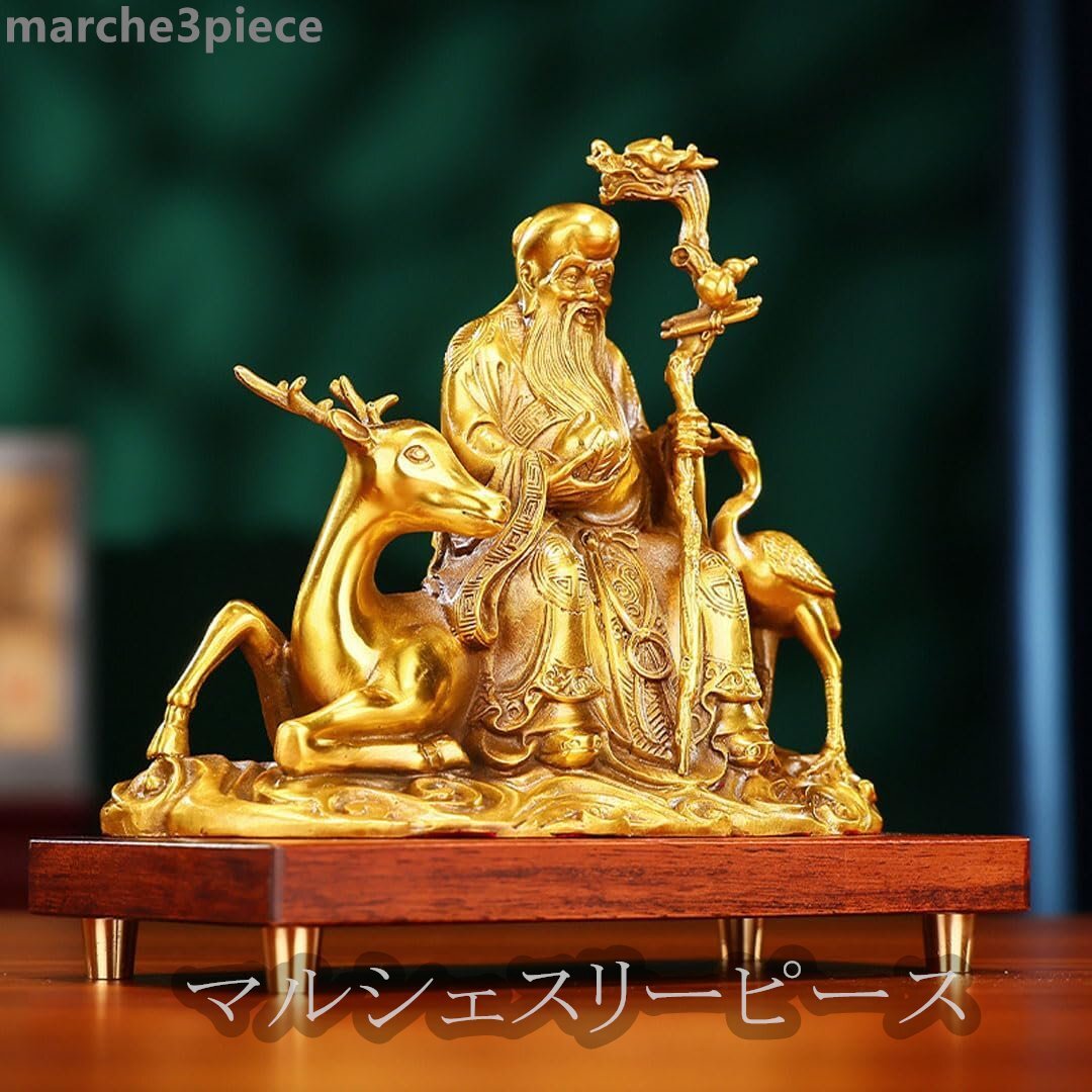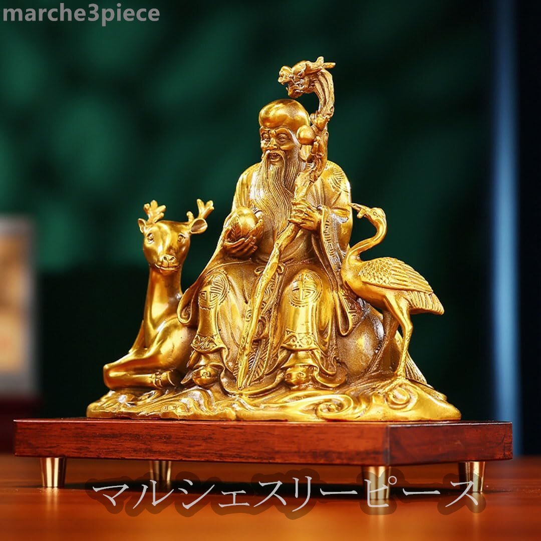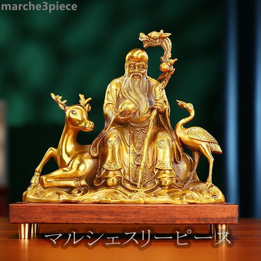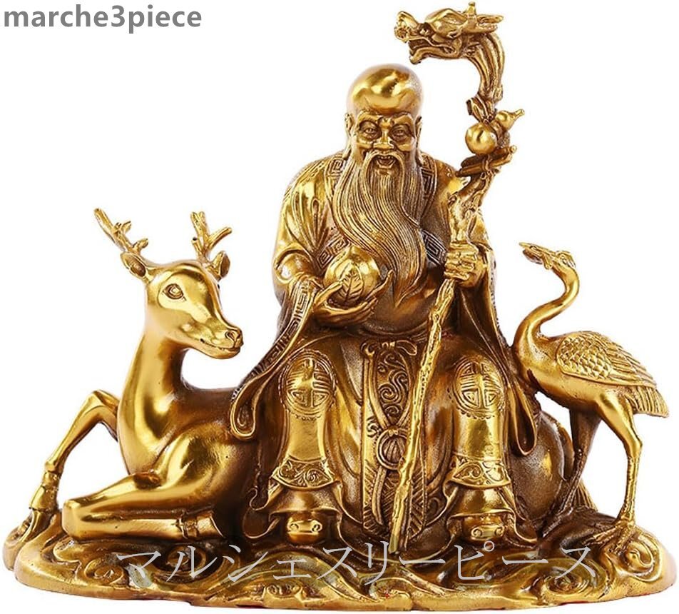開運七福神 寿老人 真鍮製 仏像 置物 銅器 (高さ18.5 cm×巾23cm)