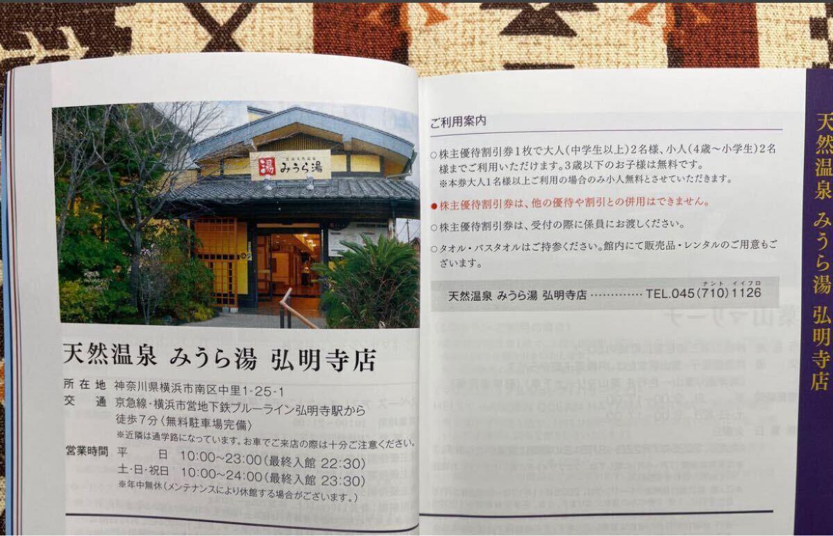 京浜急行株主優待券についてた「天然温泉 みうら湯 弘明寺店割引券」です。