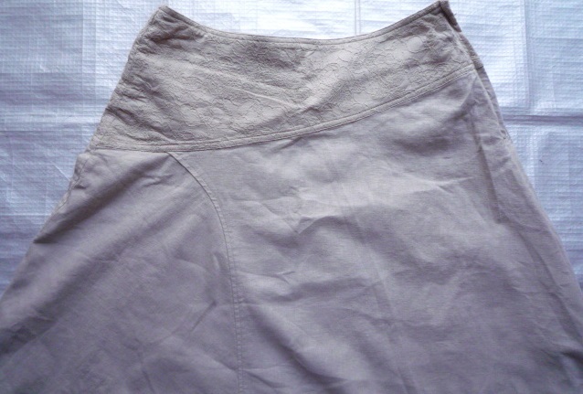 ウエストのすぐ下は、同色の糸でお花の刺繍が施されています。