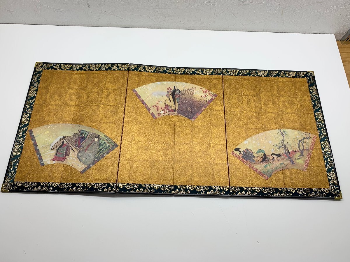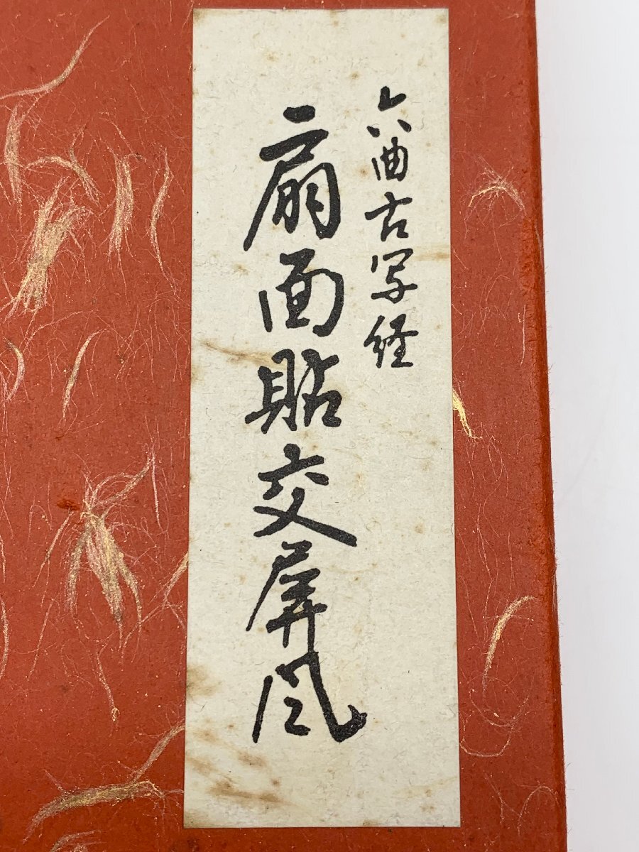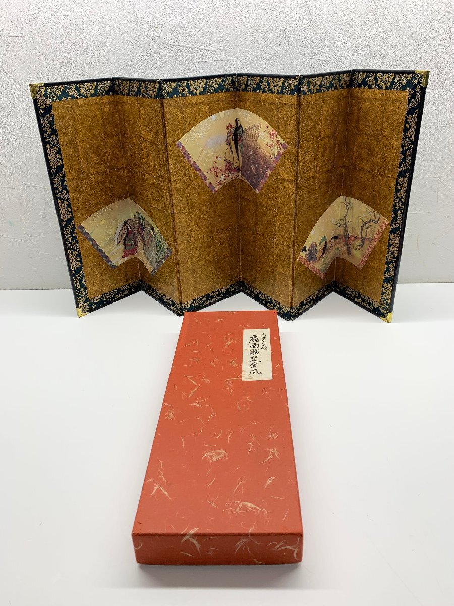 六面古写経 扇面貼交屏風 金彩 ミニ屏風 折りたたみ時 高さ 約29cm 幅 約10.5cm 全経 約63.5cm 長期保管品の出品です。