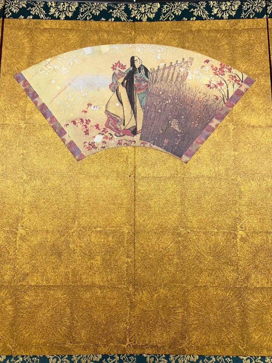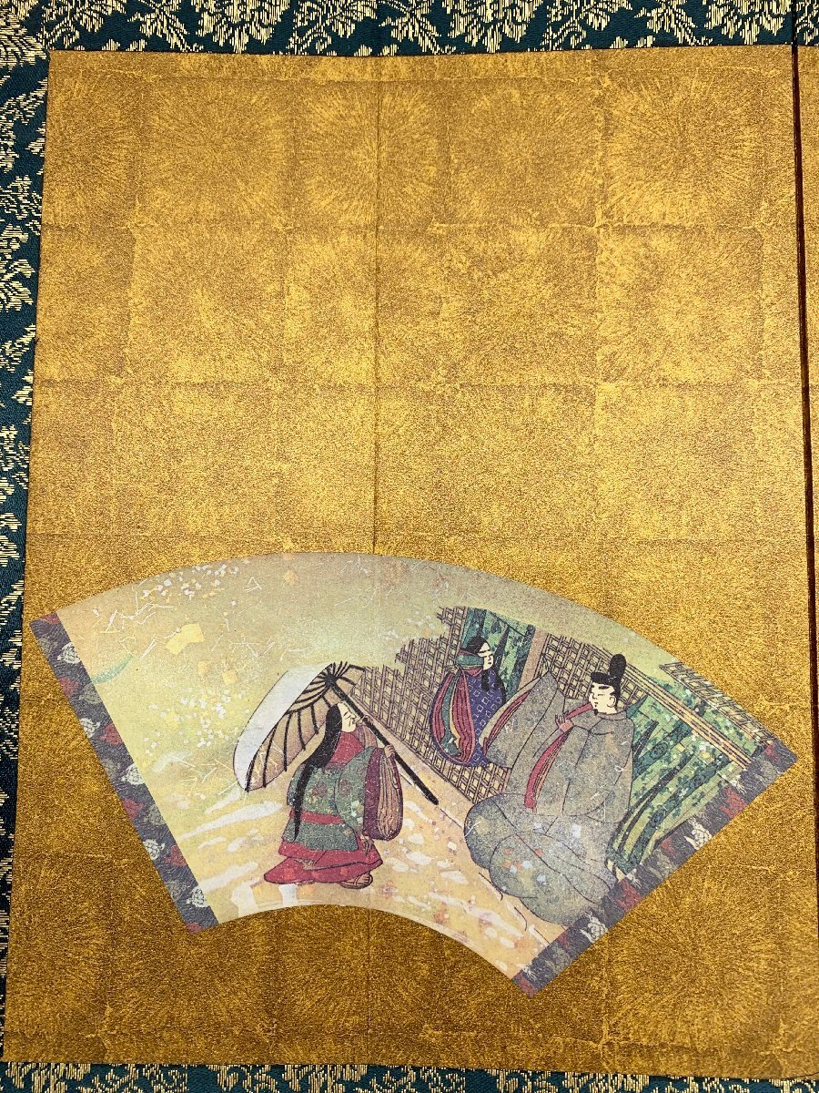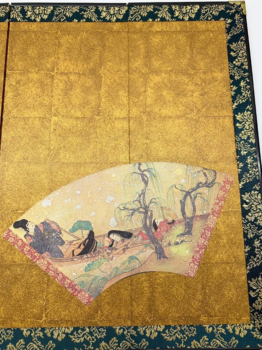 六面古写経 扇面貼交屏風 金彩 ミニ屏風 折りたたみ時 高さ 約29cm 幅 約10.5cm 全経 約63.5cm 長期保管品の出品です。