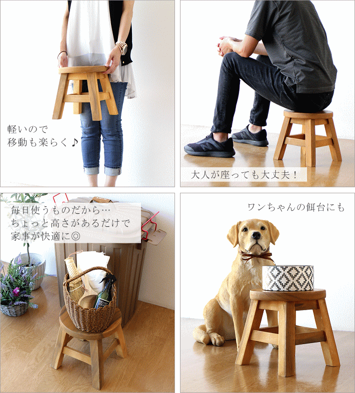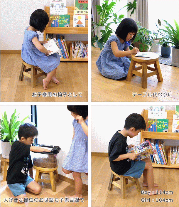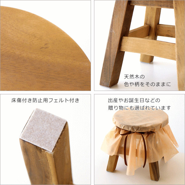 アカシア無垢材を使用した 天然木の“あたたかみ”が感じられるスツールは 子供から大人までみんなが座れる 強度十分なしっかりとしたつくり ちょっとした椅子としてはもちろん、 花台として、 サイドテーブルとして、 オットマンとして・・・ 型に はまらない 様々な使い方が出来るスツールは おうちの中でもアウトドアでも大活躍 どんなインテリアにもマッチする シンプルなデザインや コロンとした丸い形、 手作り感たっぷりの素朴な風合いは 手にした人みんなに愛される 可愛い存在になりそうです 商品名 : 子供イス プレーン 商品番号 : tom0947 全体サイズ(cm) : 幅25×奥行25×高さ25 座面サイズ(cm) : 25 脚太さ : 3cm角 材質 : アカシア 重量 : 約2kg 生産国 : タイ ※商品の特性上、節穴や小傷、接合部のすき間、小さなささくれ、色あ剥げ等が見受けられます。天然木素材特有のものですので予めご理解のうえご検討ください。 ※床のキズ防止フェルトを貼って出荷します ※天然木使用のため木目の違いがありますが、ご指定はできませんので、ご了承ください ※踏み台としてはご使用いただけません |
