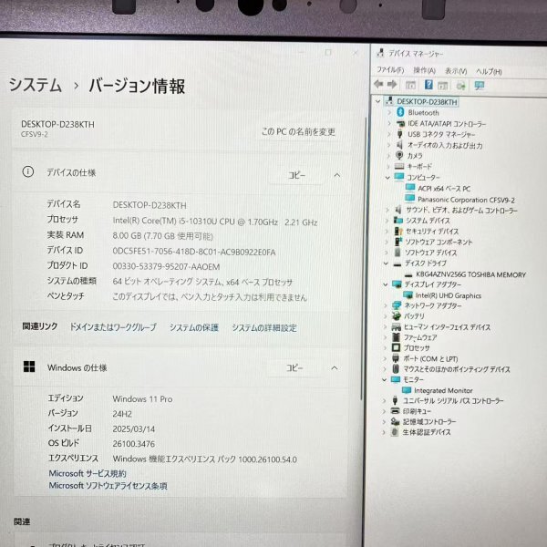 | 【高速】Panasonic レッツノート Let's note SV9 CPU Core i5-10310U RAM8GB SSD256GB Win11 Office2019 12.1型 中古 PC ノートパソコン #1