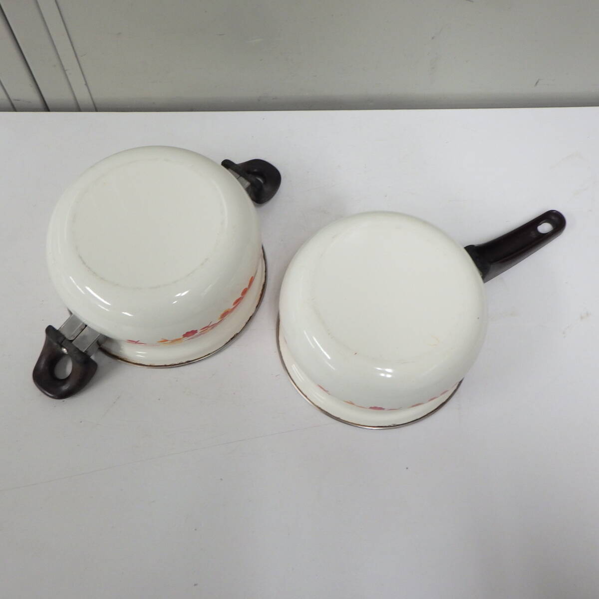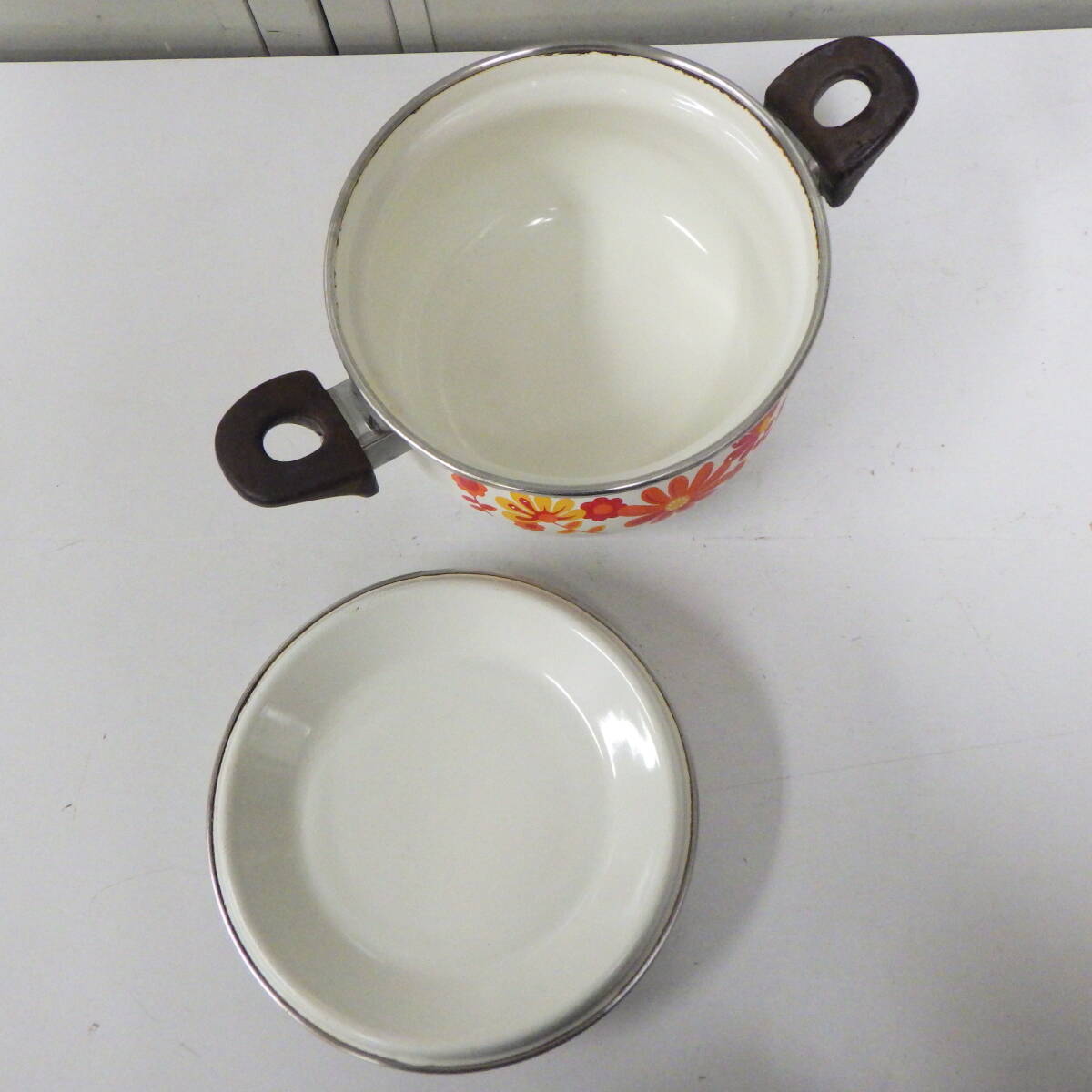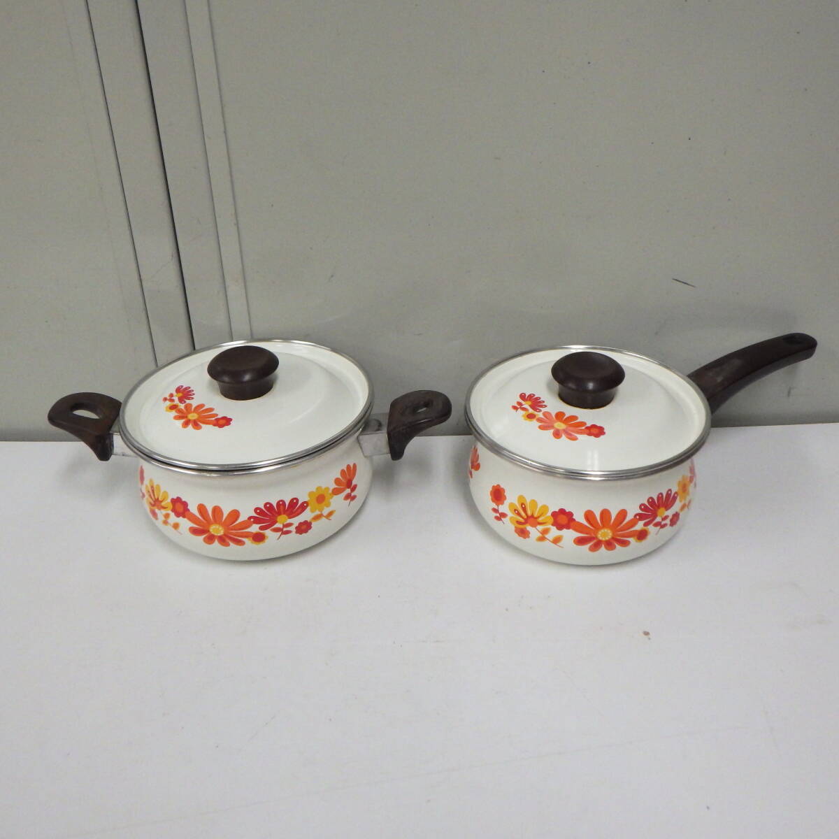 昭和 レトロ ポップ アンティーク 鍋 花柄 ホーロー 琺瑯 2点セット