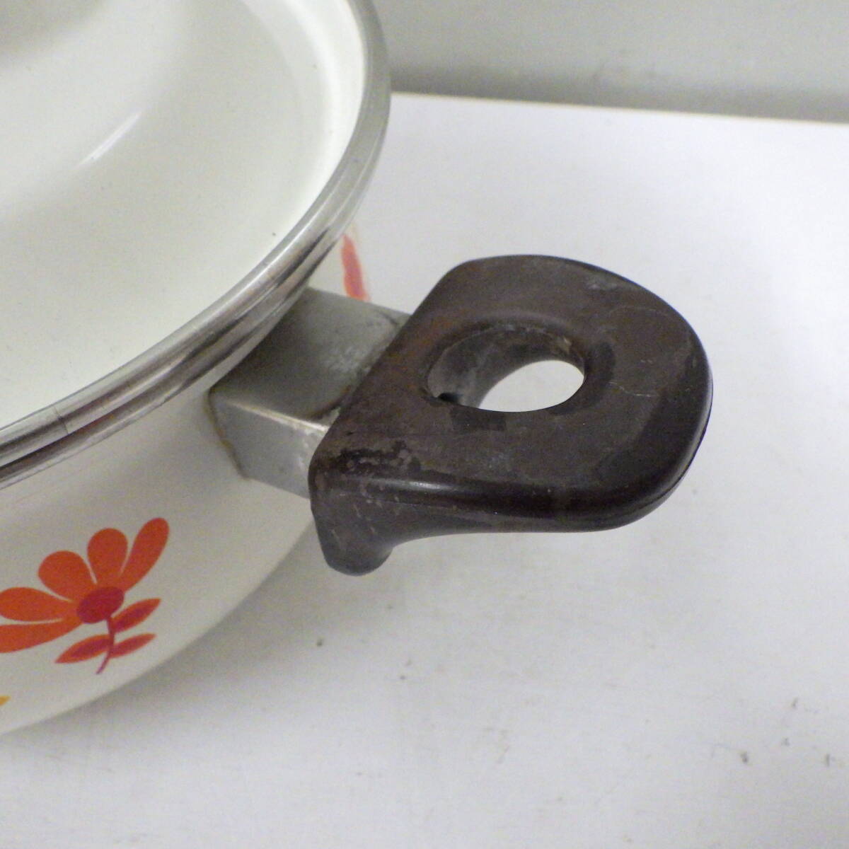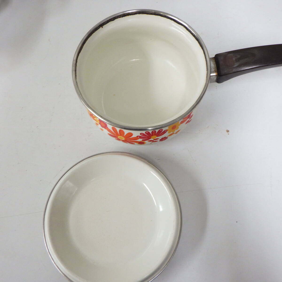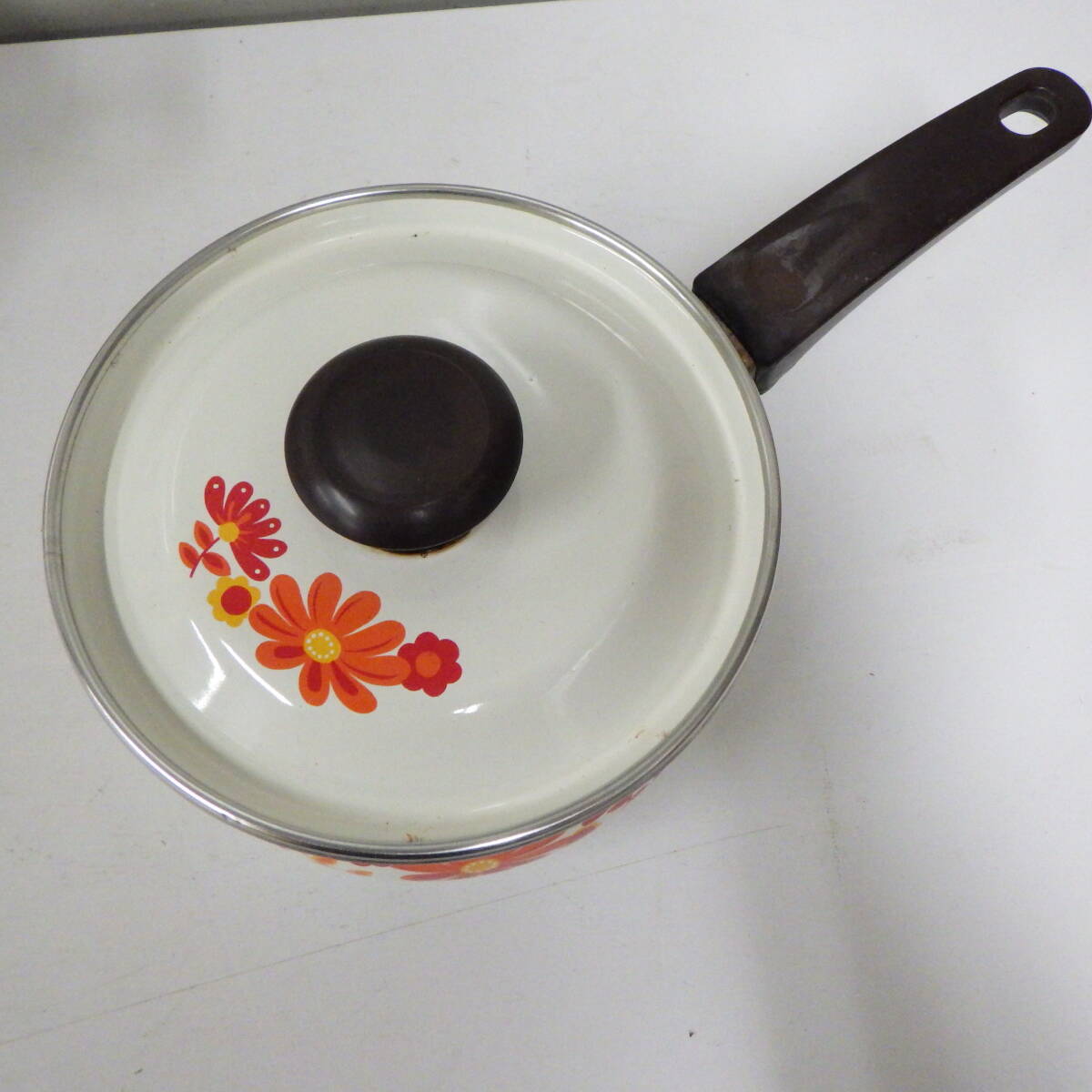 昭和 レトロ ポップ アンティーク 鍋 花柄 ホーロー 琺瑯 2点セット