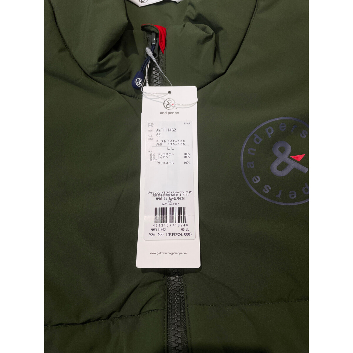 coco 未使用品【SALE】アンパスィ and per se メンズ ブルゾン LL カーキ ダブルジップ 中綿入り 98303