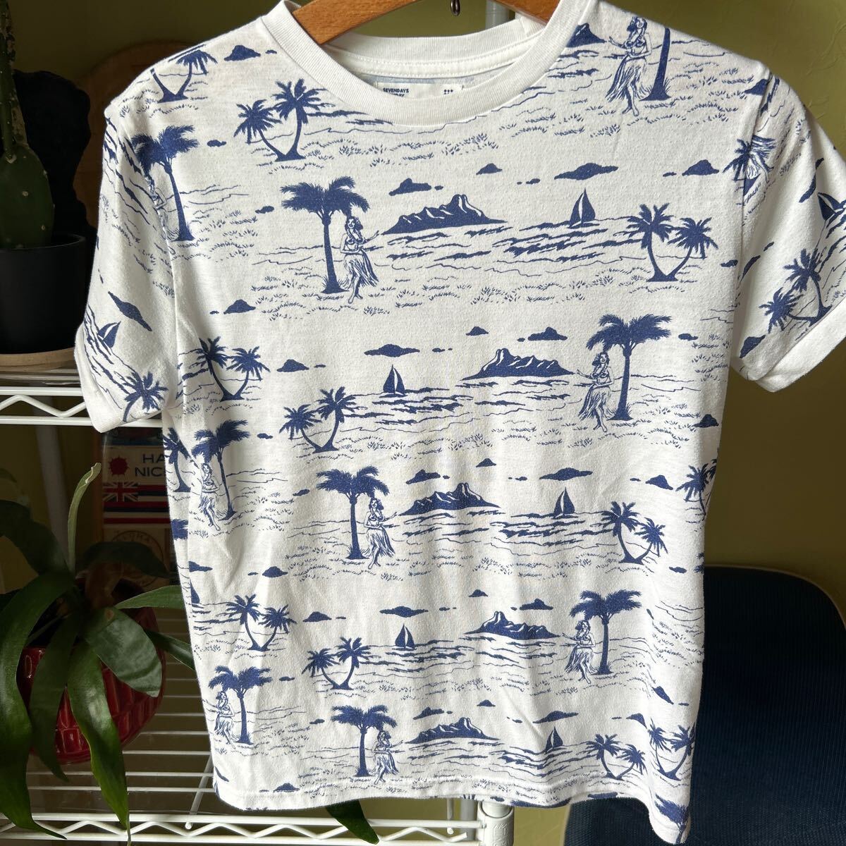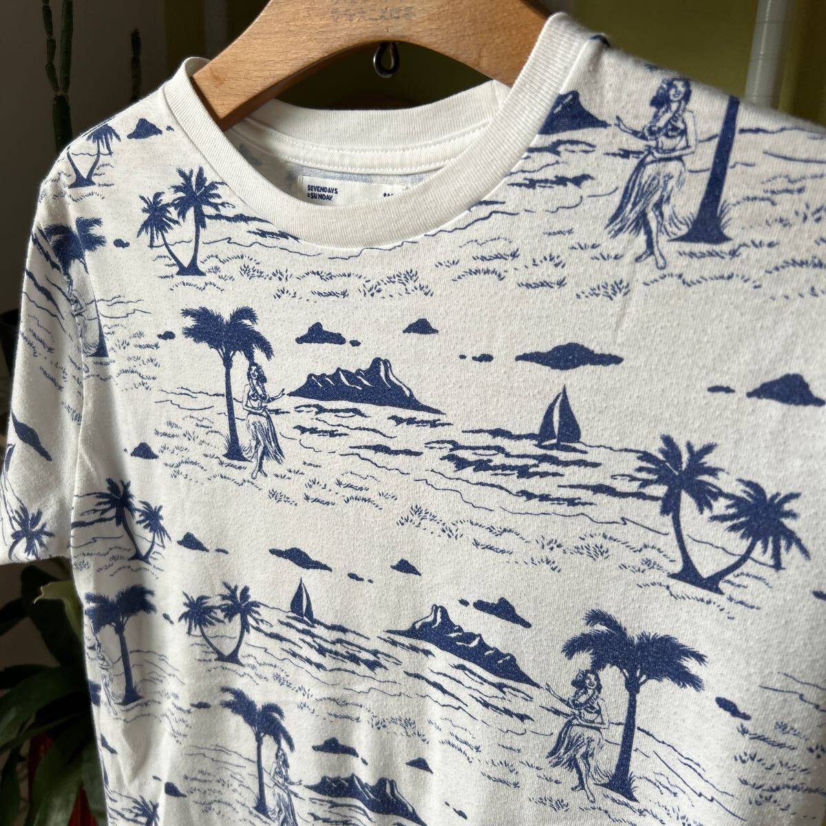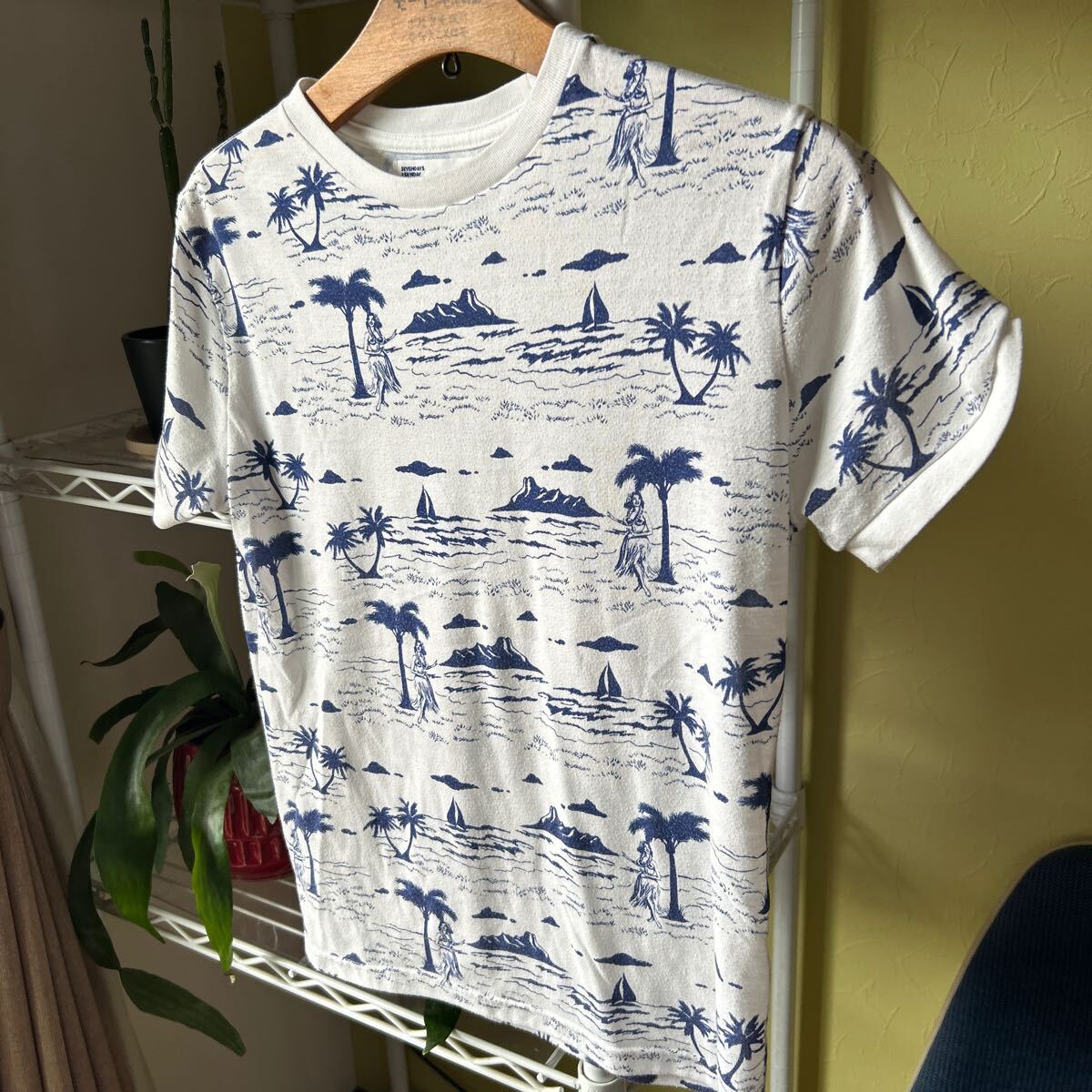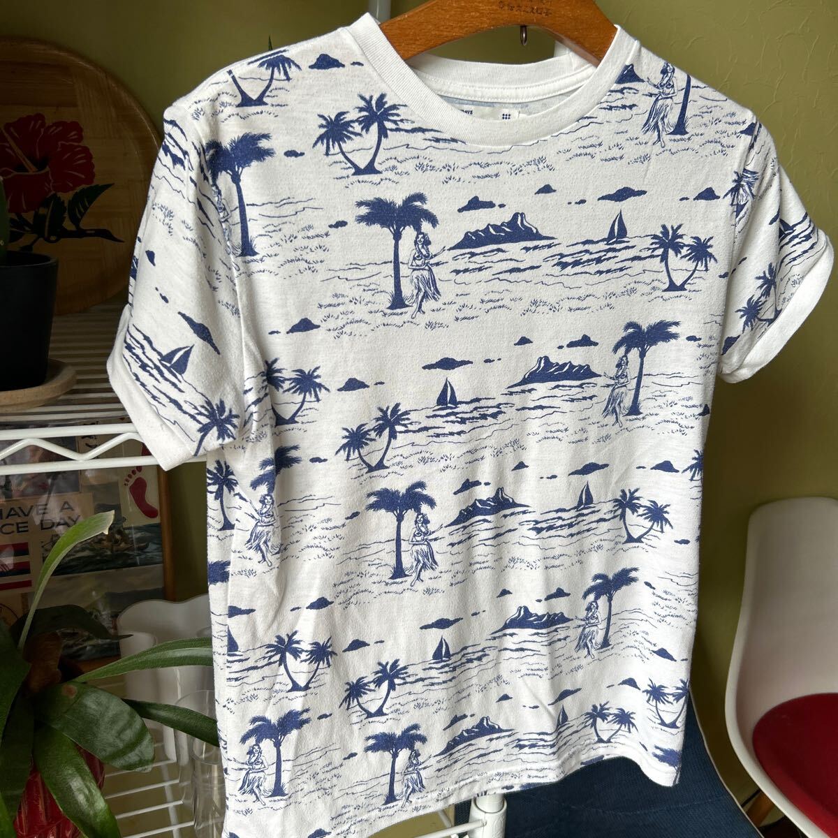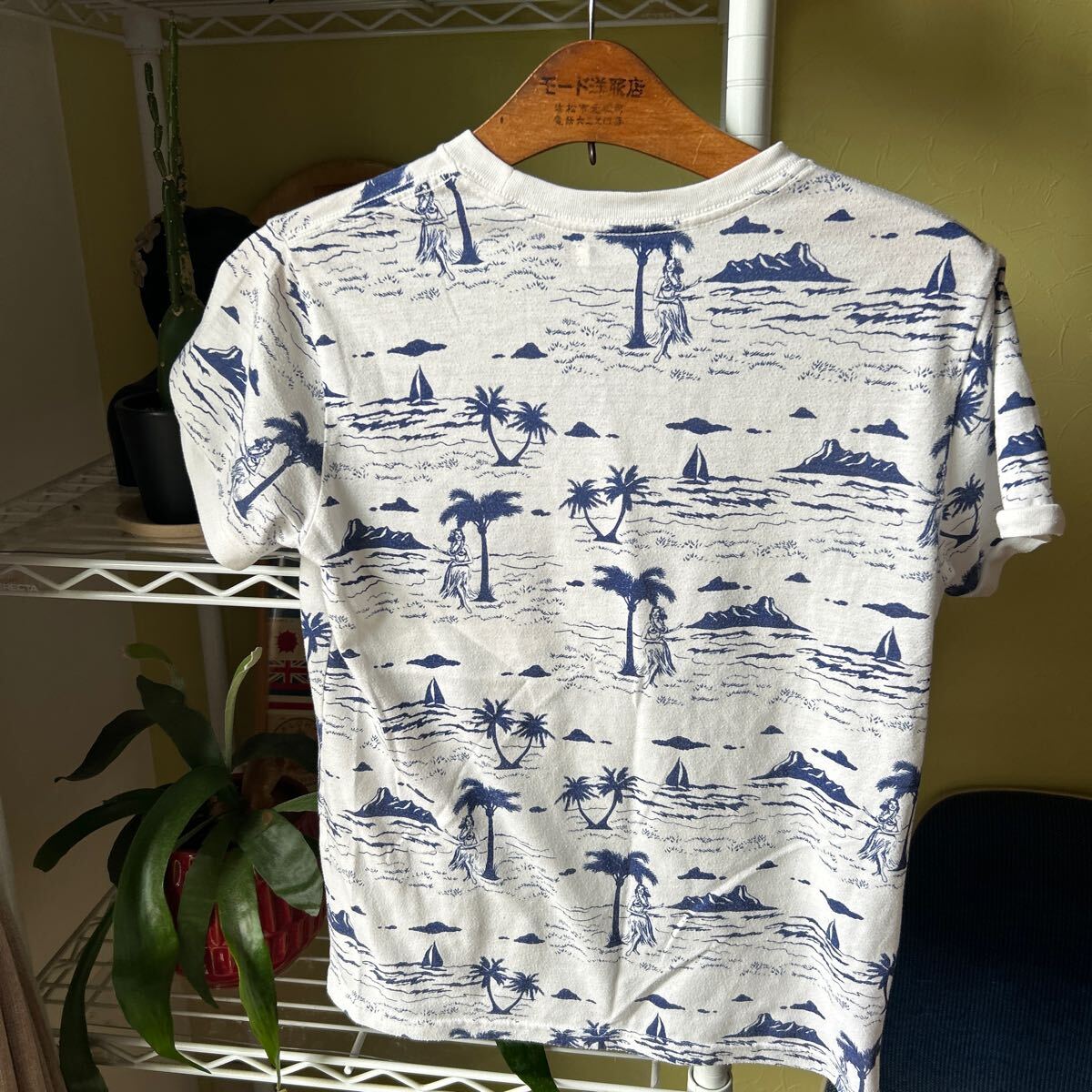 多少の誤差はお許しください。全体的に毛玉感ありますが 白にアロハ柄 良い雰囲気です。できる限りダメージは説明させていただきますが、こちらが気づかない程度のわずかなしみ、よごれ、