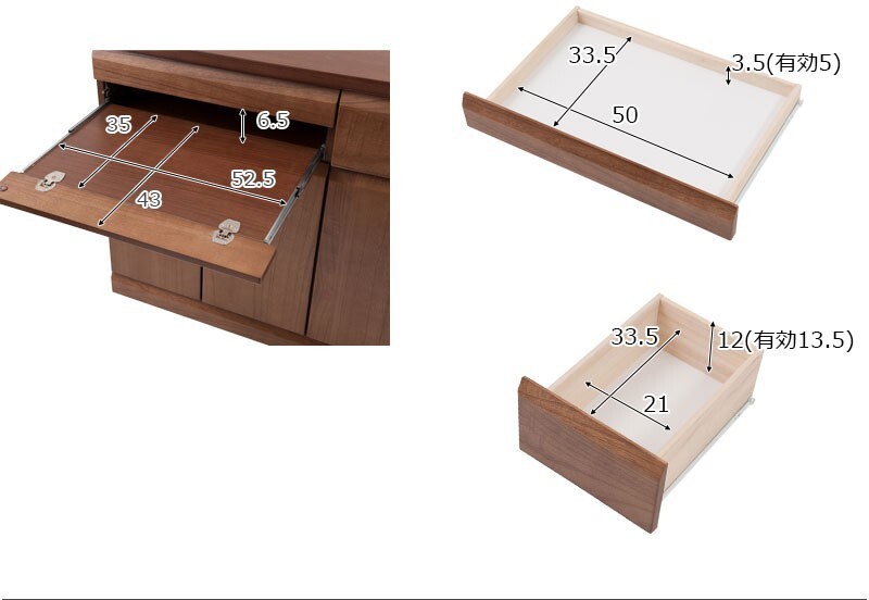 左引出し部:(約)幅50×奥行き33.5×深さ3.5cm、