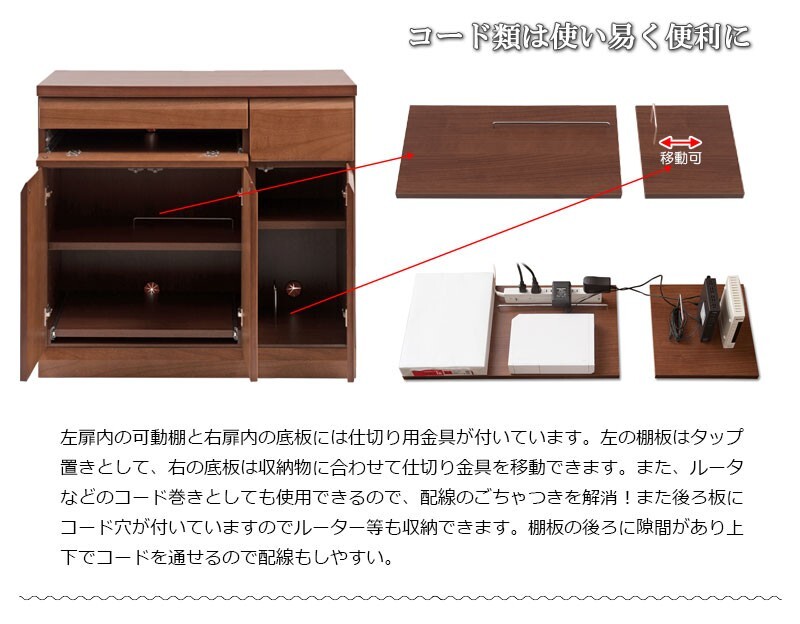 ◇天然木桐材を使用した、幅90cmの省スペースなキャビネット型パソコンデスク。