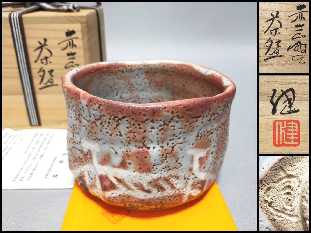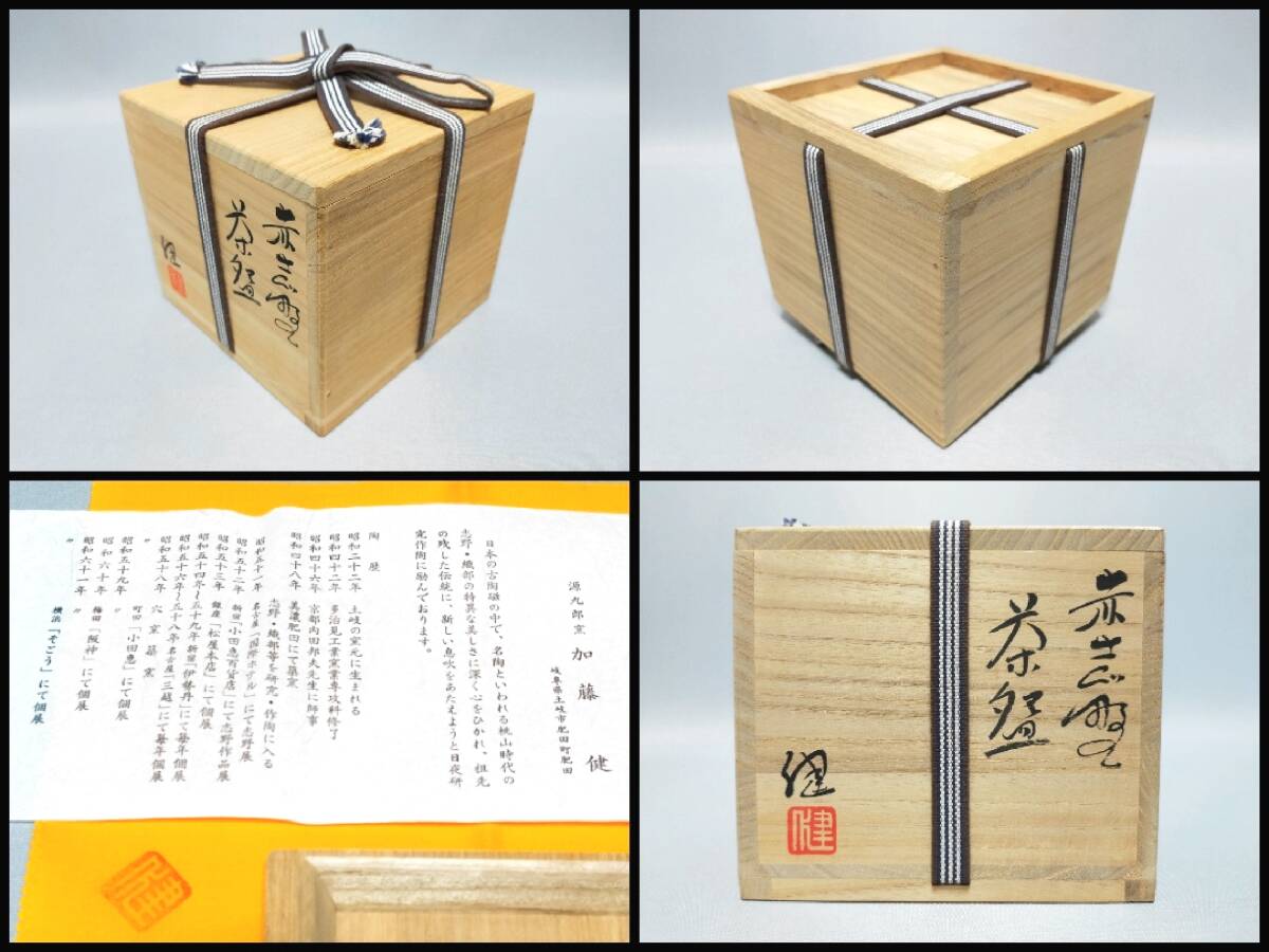 美濃焼 茶碗 源九郎窯 加藤健 造 赤志野 橋の絵 栞・共布・共箱 茶道具
