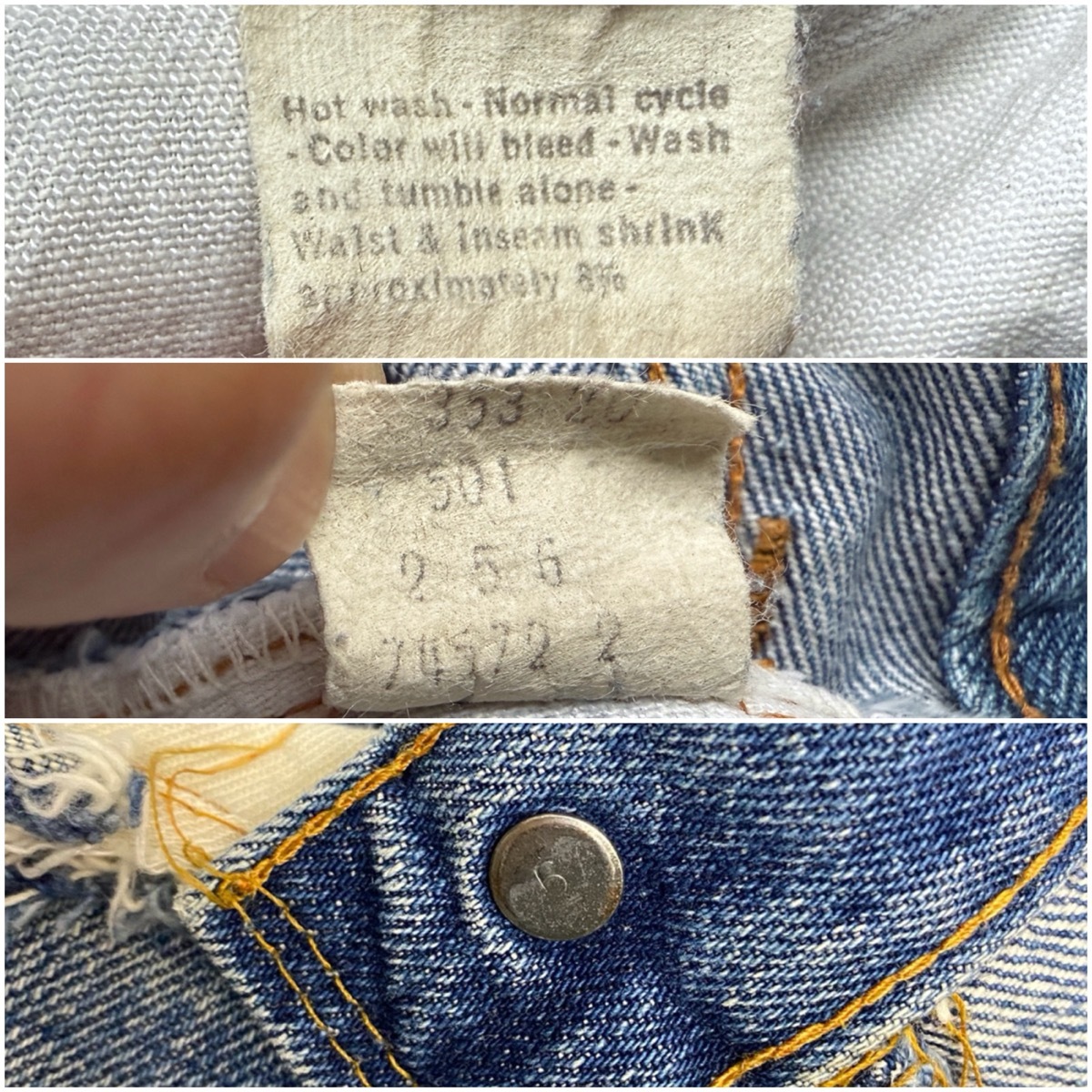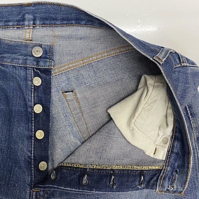 バックポケット裏シングルステッチ、ボタン裏6刻印、セルビッジです。