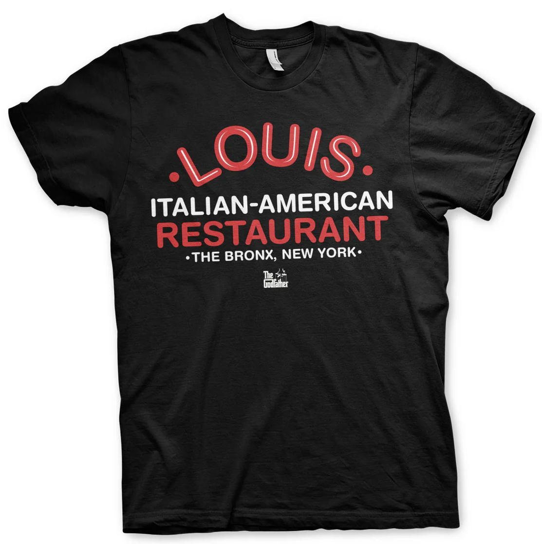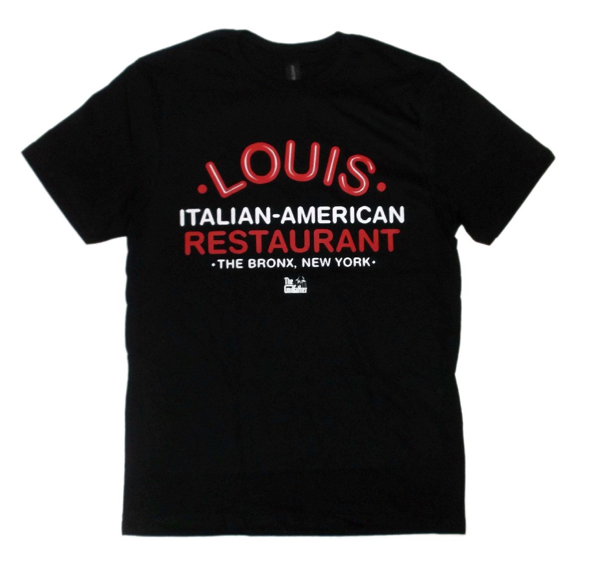 | The Godfather - Louis Restaurant T-Shirt アメリカに生きるイタリア人移民とその子孫であるイタリア系アメリカ人一族、 ニューヨーク・マフィアの一つとして地下帝国で栄華を誇ったコルレオーネ家の栄光と悲劇を描いた 名作「ゴッドファーザー」のTシャツ「LOUIS RESTAURANT TEE」、EUライセンスのオフィシャル品です。 マイケルが、トイレに銃を仕込み敵のボスと会談する、 NY,ブロンクスに実在したレストラン「LOUIS RESTAURANT」のロゴをフィーチャリング! 洒落が効いてますね!! Color: Black 新品・正規品 Lサイズ 180cm前後の方に良いかと思われます。肩幅50cm, 身幅56cm, 着丈76cm メール便送料¥250(代引き不可・紛失補償なし) アメキャラ、映画Tシャツ等ライセンスアイテム、ラットフィンク関連品、レゲエ、バンドTシャツ等取り扱っております。 ** 他にも色々出品中です。 CWHM IWts | |||||||