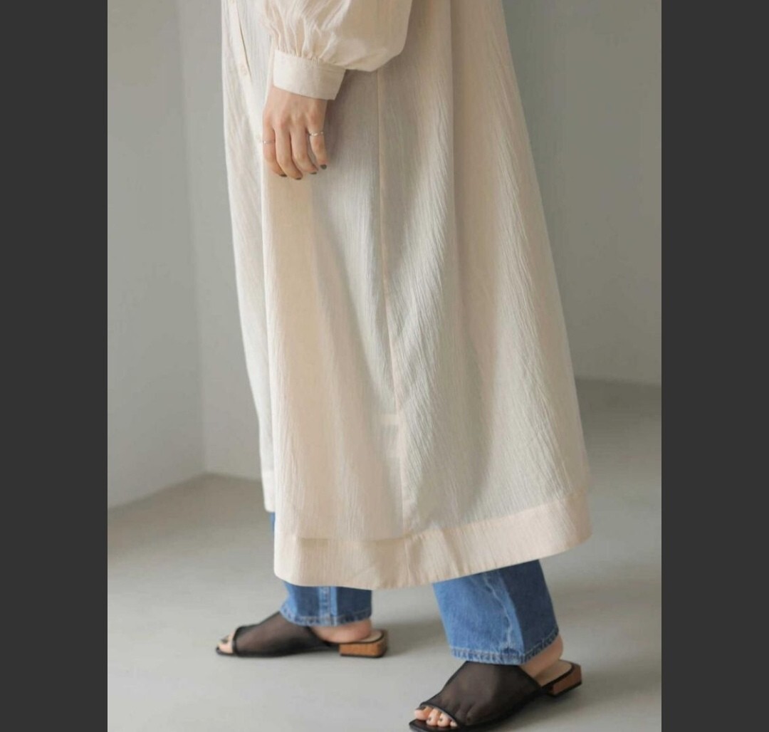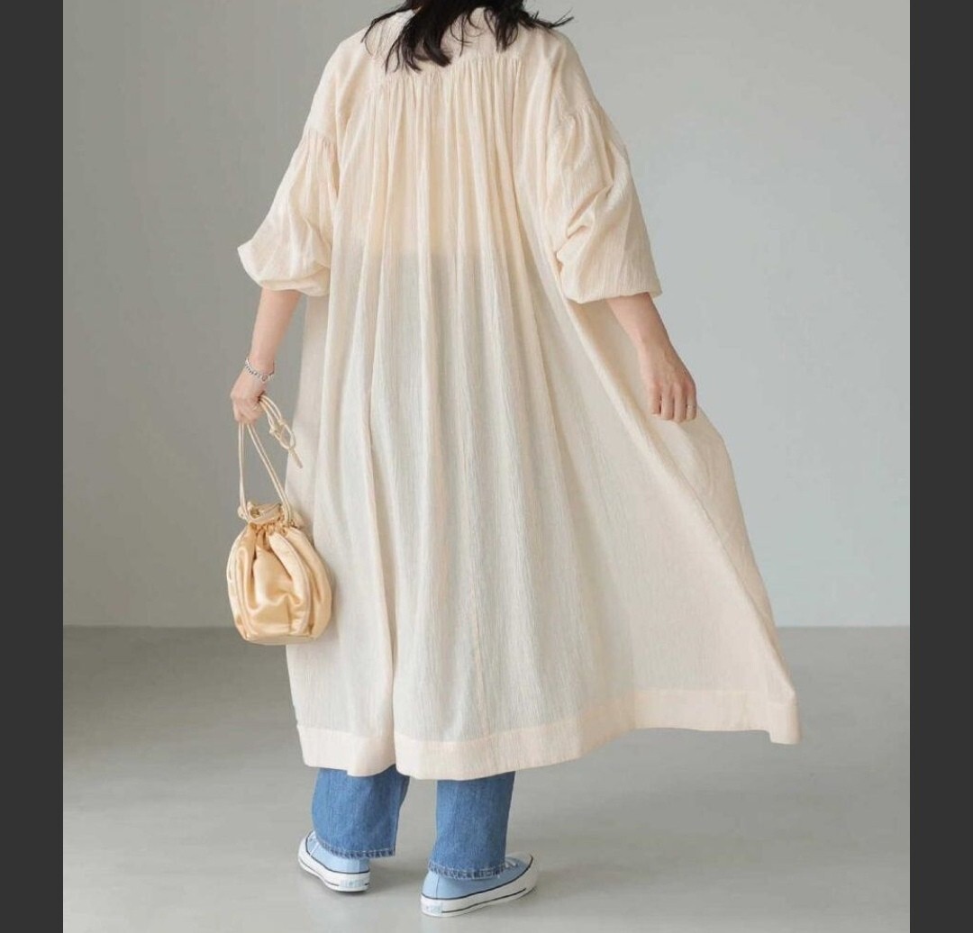 ワンピースとしてはもちろん、前開き仕様をいかし羽織アレンジも楽しめる、着回し力の高さも自慢です。