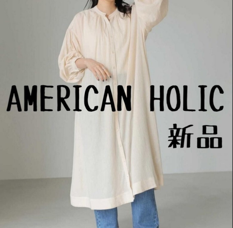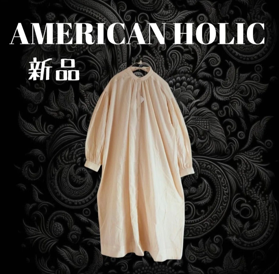新品 アメリカンホリック AMERICAN HOLIC スタンドカラーギャザーワンピース