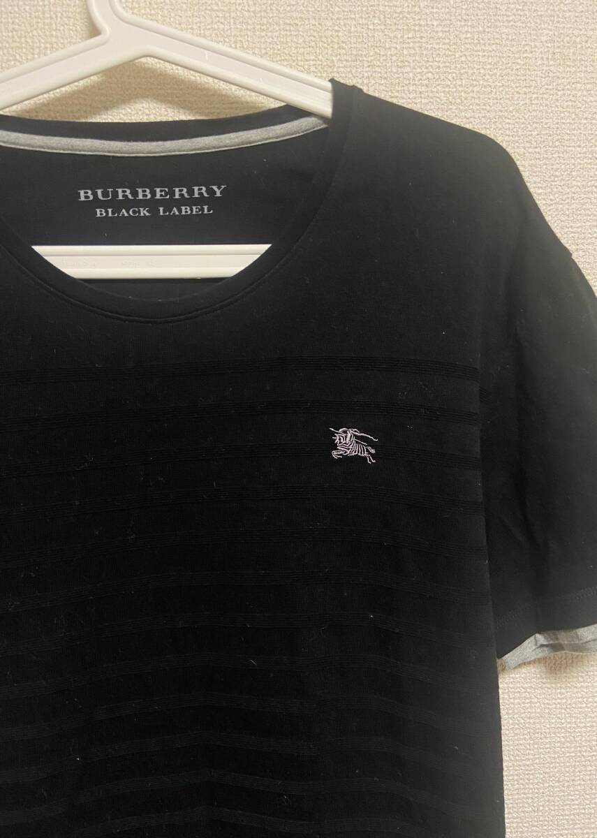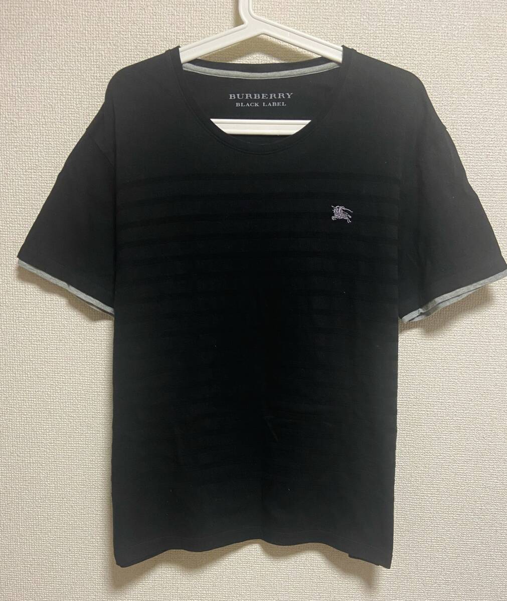 美品 サイズ4 バーバリーブラックレーベル シャドーボーダー Tシャツ 黒 カットソー LL XL BURBERRY BLACK LABEL