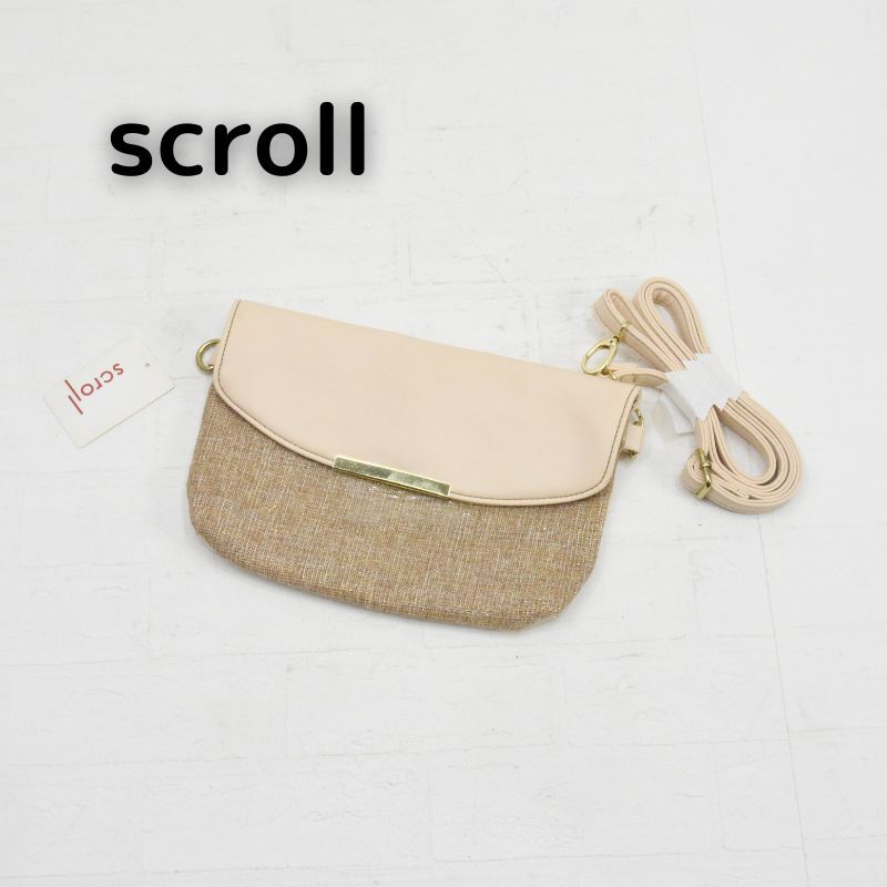 ラメがちりばめられたファブリック素材とレザーのコンビのミニショルダーバッグです。
