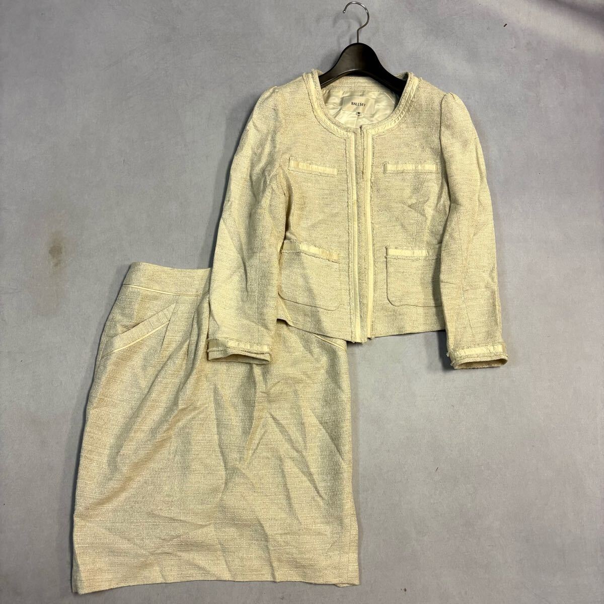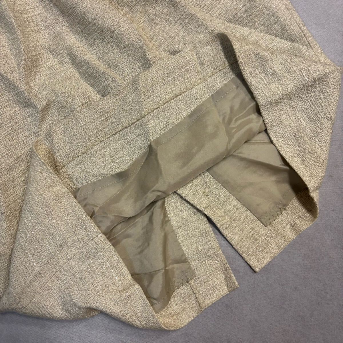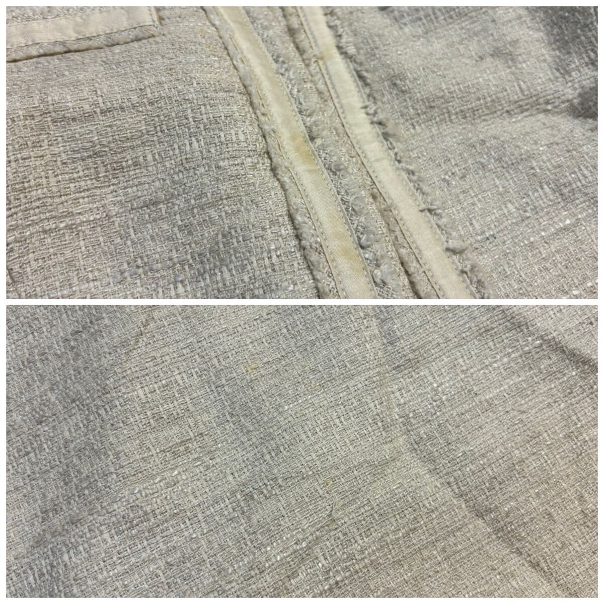 ジャケットのお腹辺りとスカートの裾辺りに少々汚れがございます。