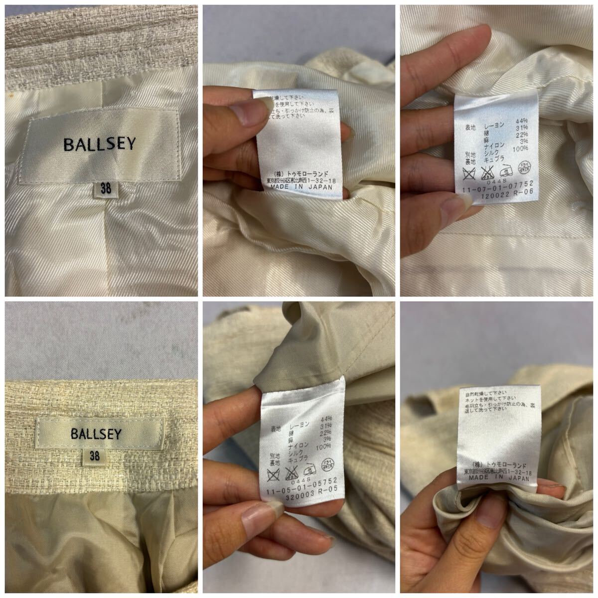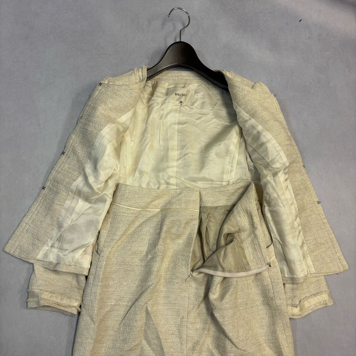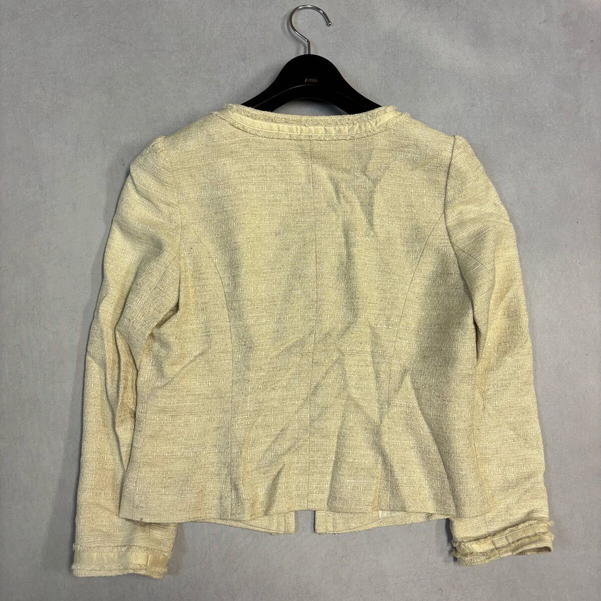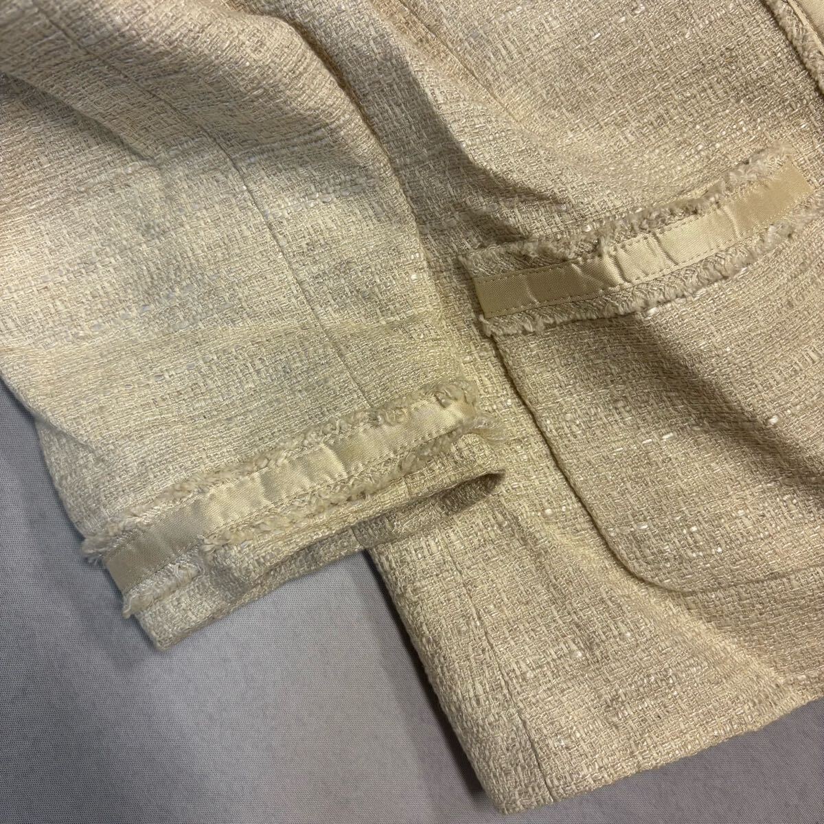 ジャケットのお腹辺りとスカートの裾辺りに少々汚れがございます。