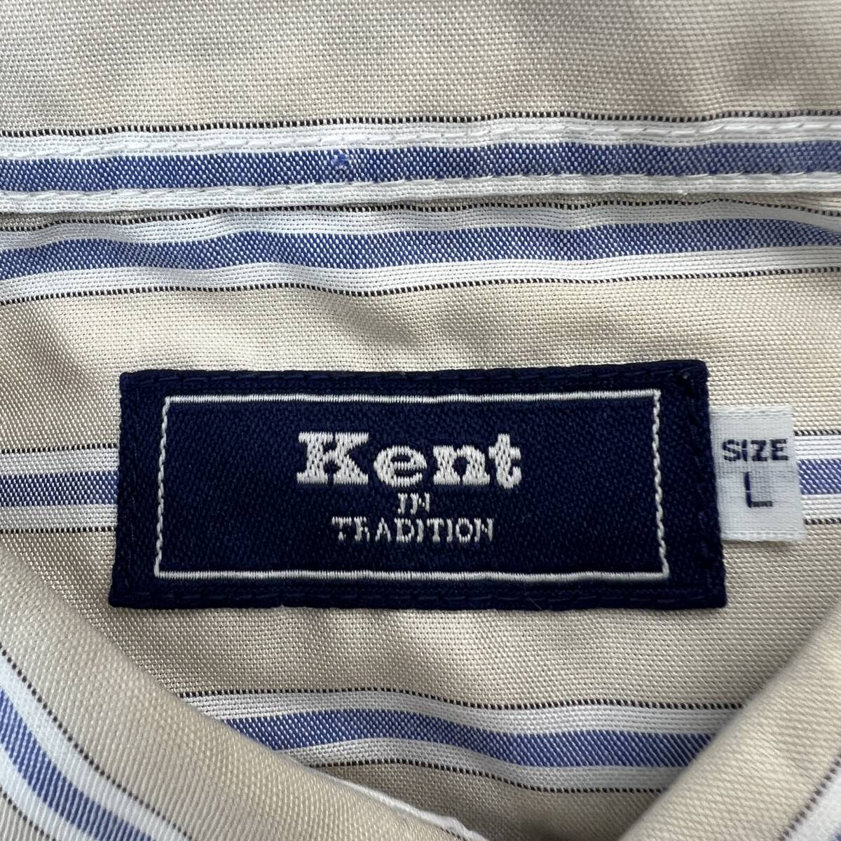 KENT ケント ベージュ系 半袖 シャツ グレー ストライプ シンプル メンズ Lサイズ 【 定番 シンプル 大人 カジュアル 】 人気の1枚 ●DF305