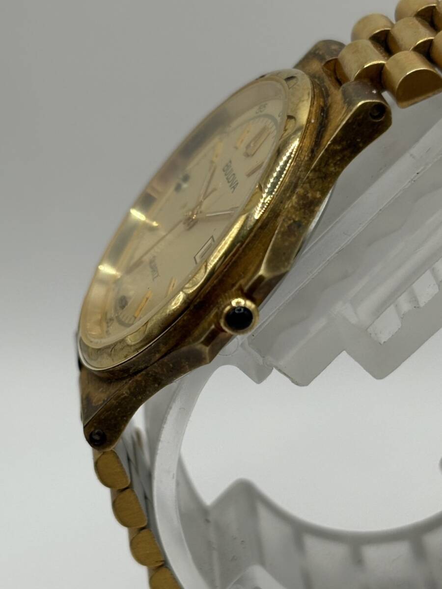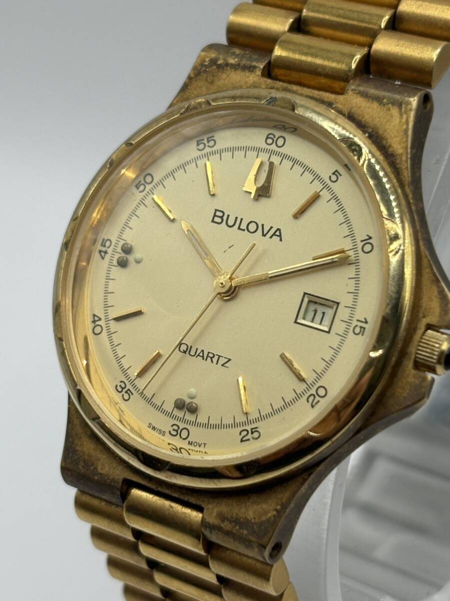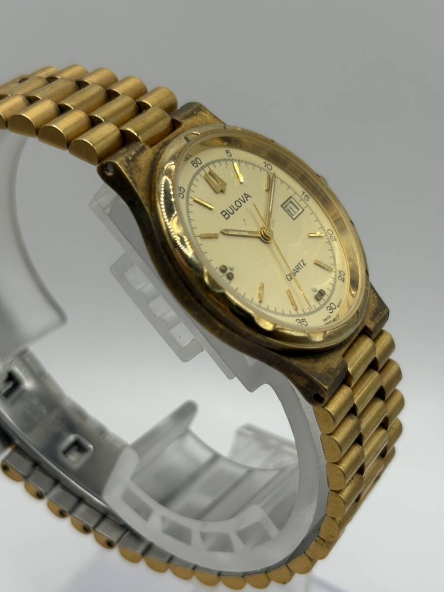 【高級ブランド】BULOVA ブローバ QZ 9063-5020 メンズ ゴールド quartz 金 GOLD 腕時計 watch ベルト アンティーク