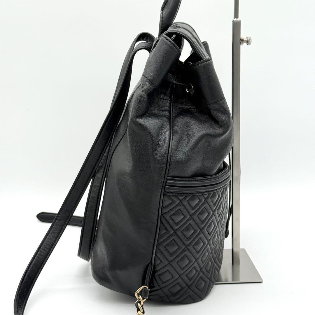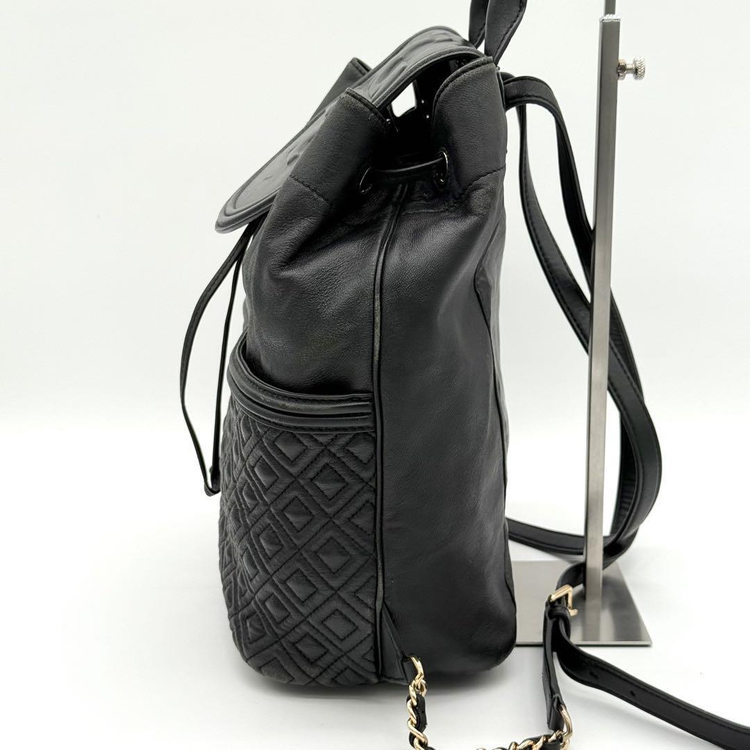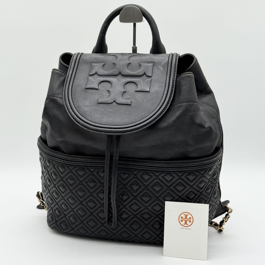 【良品】Tory Burch トリーバーチ リュックサック バックパック レザー 通勤 通学 フォーマル マグネット レディース ブラック GE000520