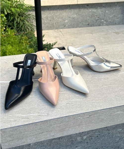 参考商品名:【24SS新作】【R&E】Tストラップカットミュールパンプス