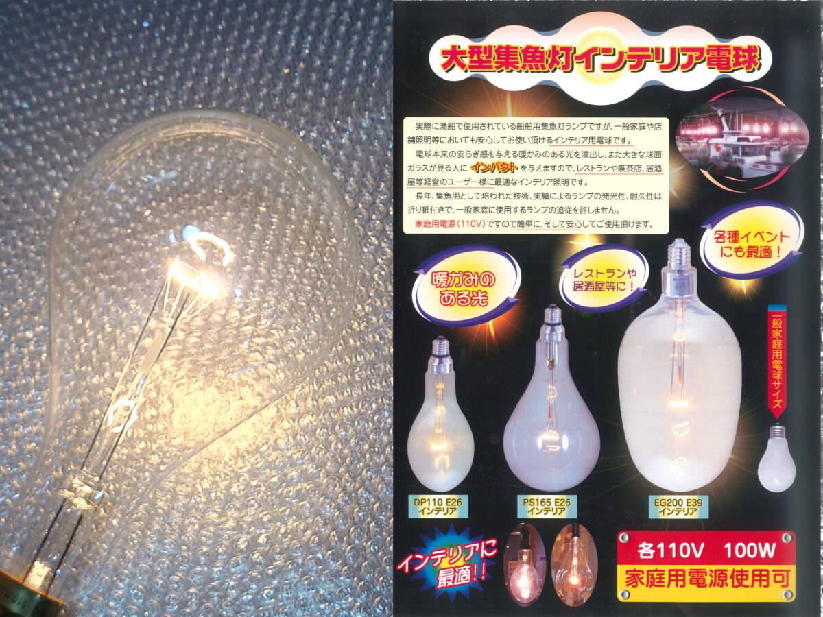 また、画像に写っていない不備やダメージ等も含まれる可能性がある点、あらかじめご了承ください。中古品にご理解頂ける方のみノークレームノーリターンでお願いします。破損防止の為、緩衝材使用し発送します。商品の説明舶用電球株式会社(Hakuyo Denkyu) のインテリア用電球 大型白熱電球タイプ 100W バルブ形状PS165 E26口金漁船で使われている集魚灯をインテリア用として安心して使えるように加工したHakuyo Denkyuの商品です。