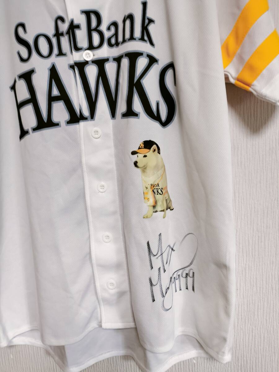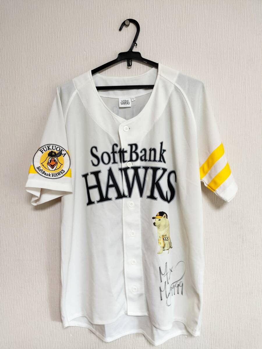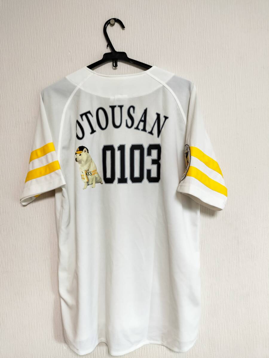 福岡ソフトバンクホークス/”OTOUSAN” ユニフォーム(サイズ:L/お父さん犬/DJ MAXサイン入り)