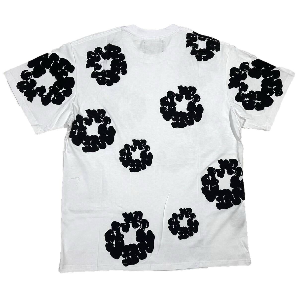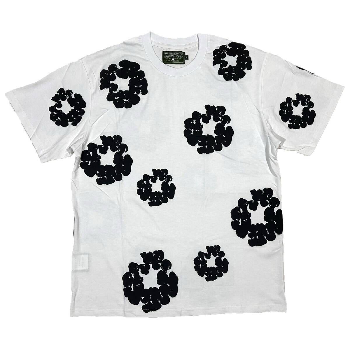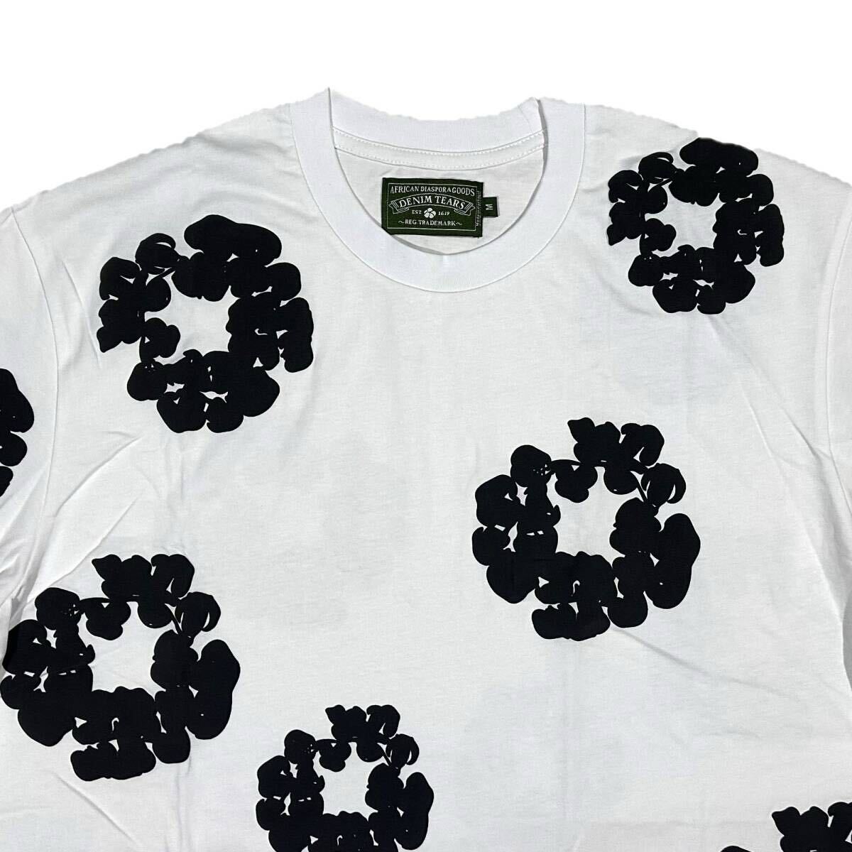 Denim Tears デニムティアーズ フラワープリント 半袖 Tシャツ (ホワイト/ブラック) (S) [並行輸入品]