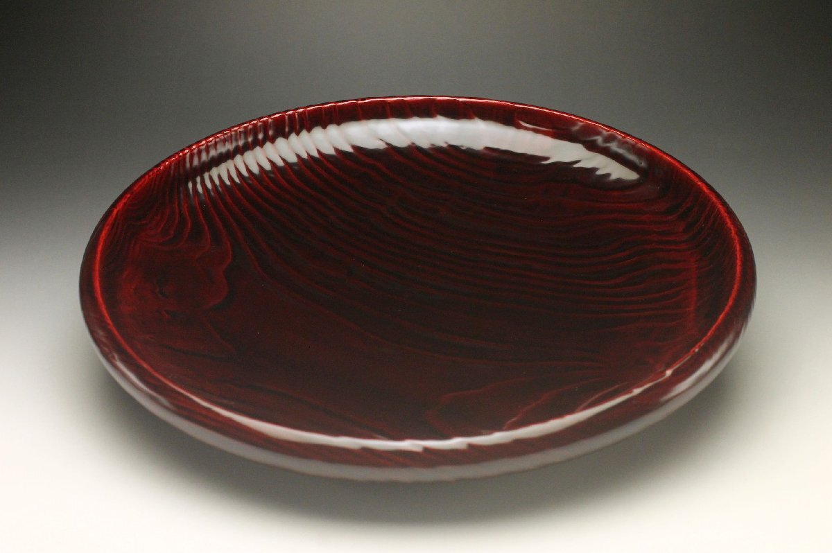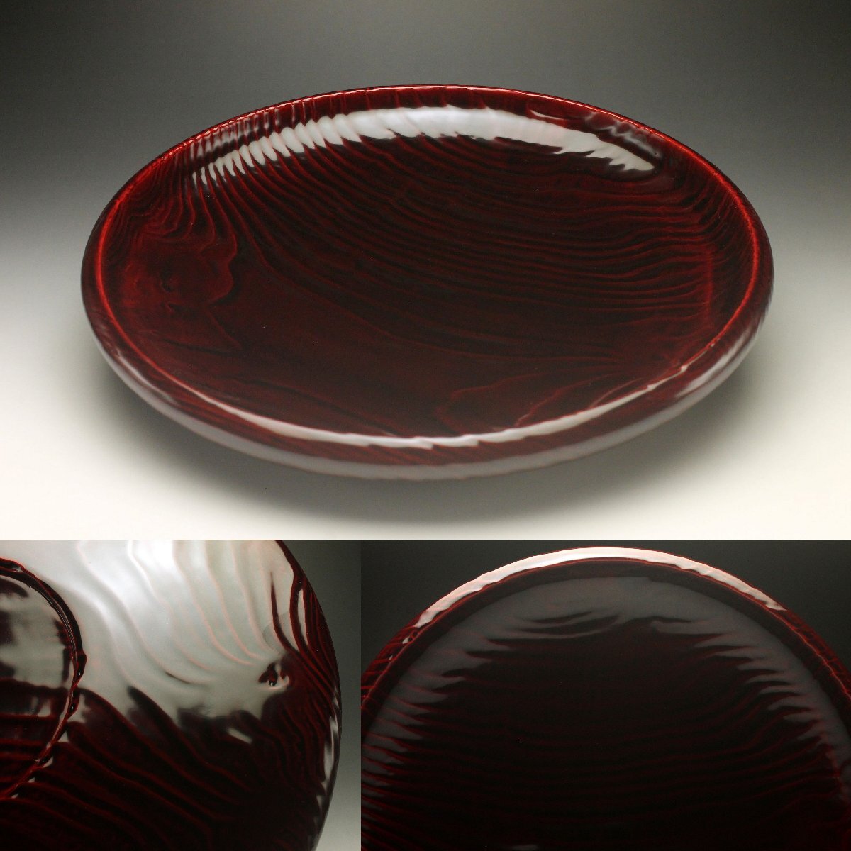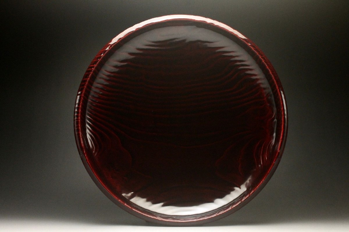 【余韻】 天然木製 松材 漆塗 丸盆★径:30cm 木箱 無傷美品<同梱可>