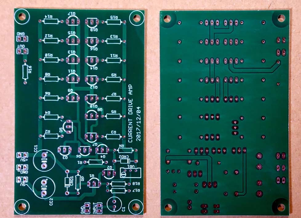 2SC1815や2SA1015などを使った電流駆動アンプ基板です。