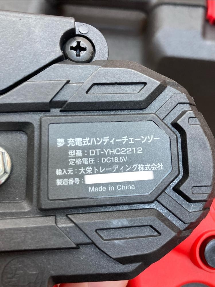 夢グループ ■商品名 充電式ハンディーチェーンソー ■型番 DT-YHC2212 |