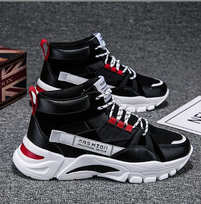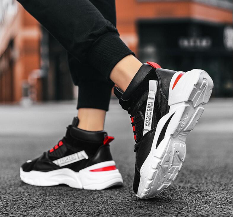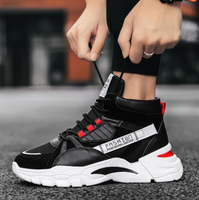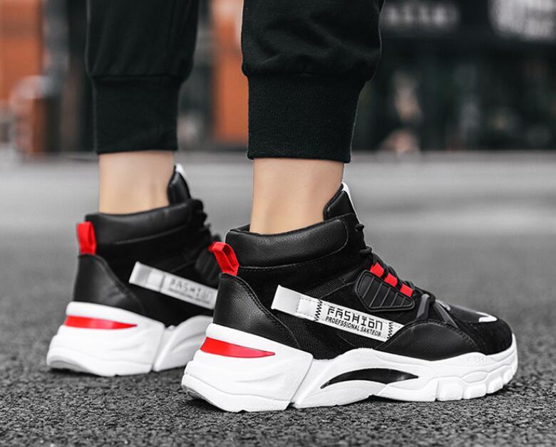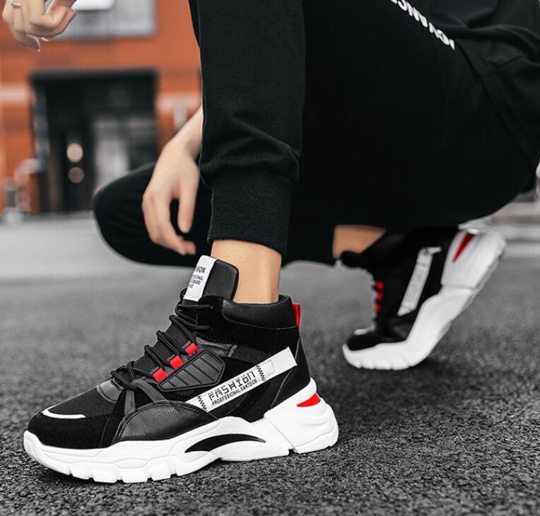 人気品新品スニーカー バスケットシューズメンズ ハイカット厚底 スポーツ幅広 アウトドアスポーツシューズ防滑ソール通学 ブラック25.5cm