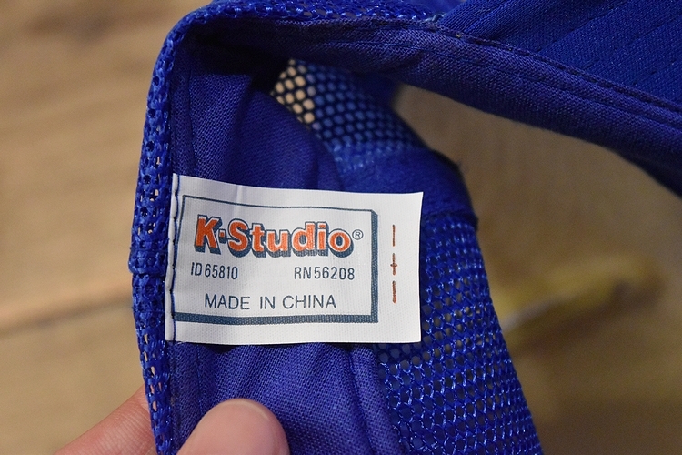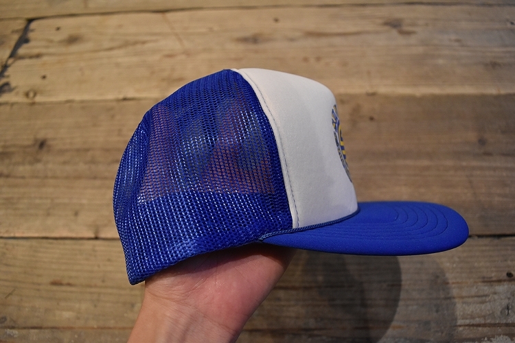 デッドストック品◎90sビンテージK-StudioタグトラッカーキャップメッシュキャップFreeフリーサイズ青ブルー×白ホワイト未使用品 t858