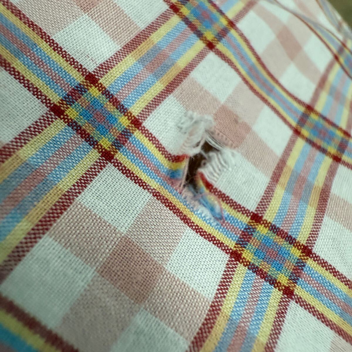 前、右裾寄りに破れがあります。その他特に目立つような傷や汚れはありません。