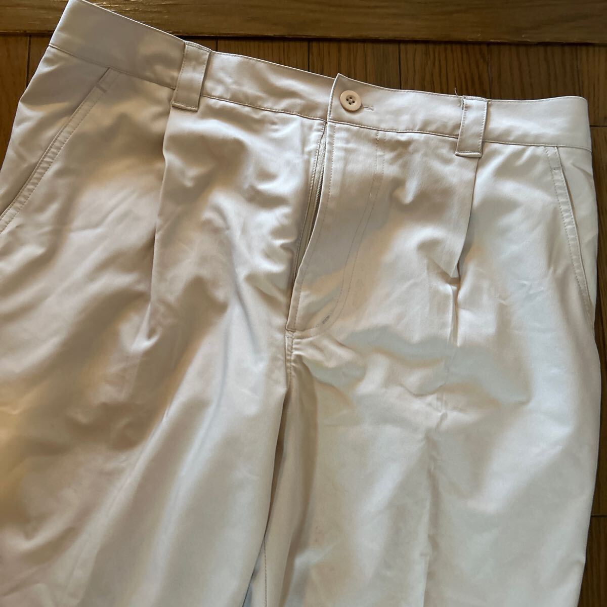 ご覧の通りのお品です。コンペ頂き物。ちょいと前の高級モデルと思います。春夏、ワンシーズンぼちぼち使用して倉庫保管です。実用問題殆ど無いと思いますが、経年変化や小さな傷みなどは個人差がございます。写真等でご確認の上、ノークレームノーリターンで、見落とし部や細かいところ気にされる方は入札ご遠慮ください。裾部ポケットにもポケット有り、上品なベージュ、サイズがよろしければ。使用感あります。最後の写真、小さなシミ、裾部に薄ら汚れ、後ポケット部ボタンが取れそうですが、敢えて触っていません。少々難ありとか印ありましたが、個人的には全く無かったです。