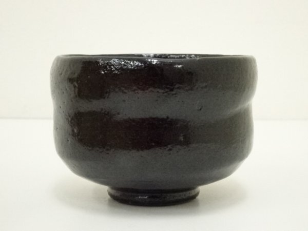 ys7415466; 佐々木昭楽造 長次郎写鉢開黒楽茶碗(共箱)【道】