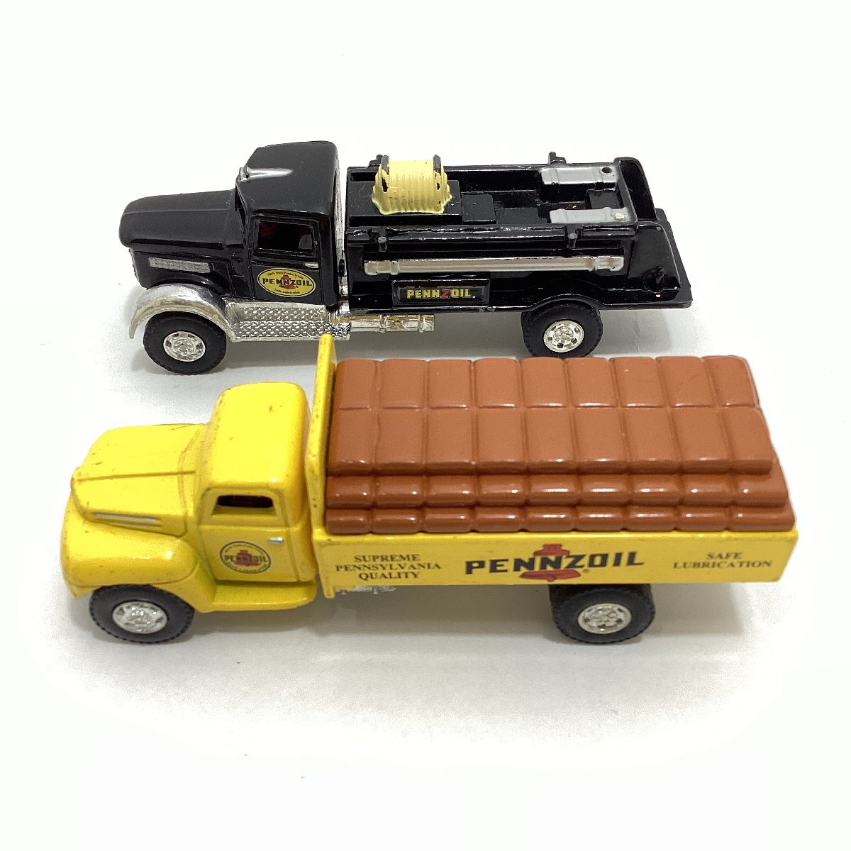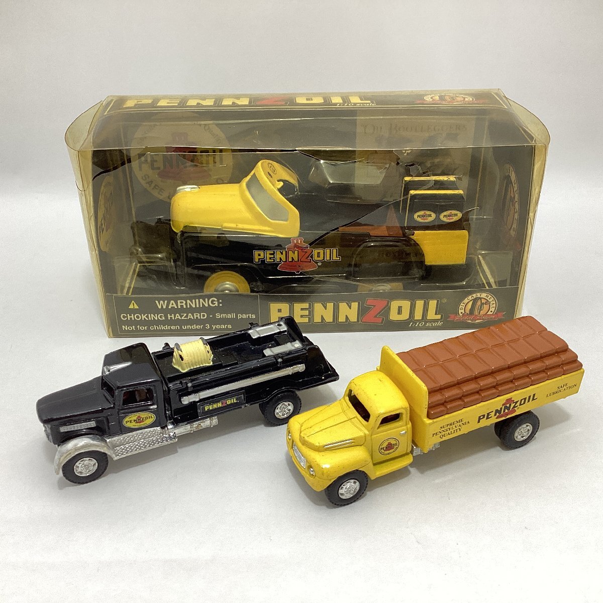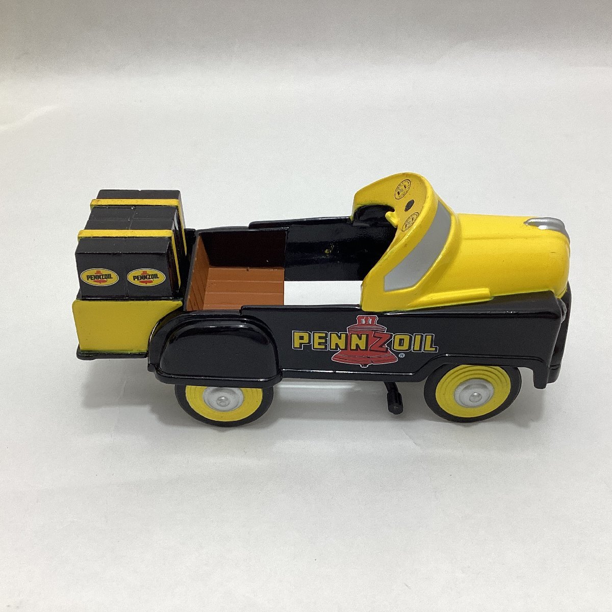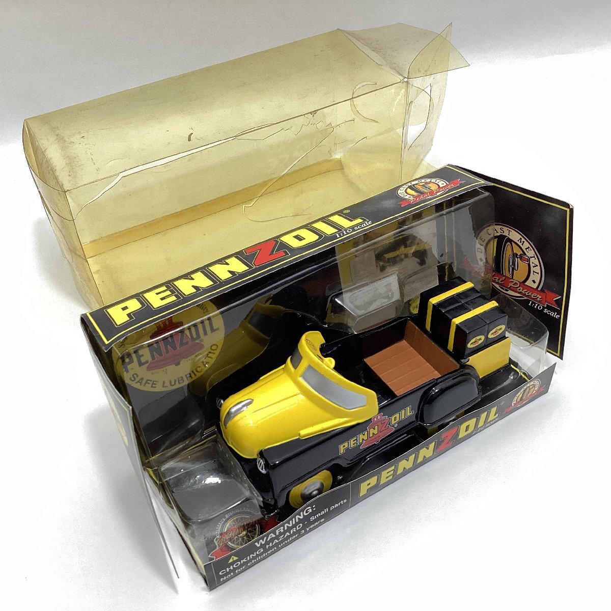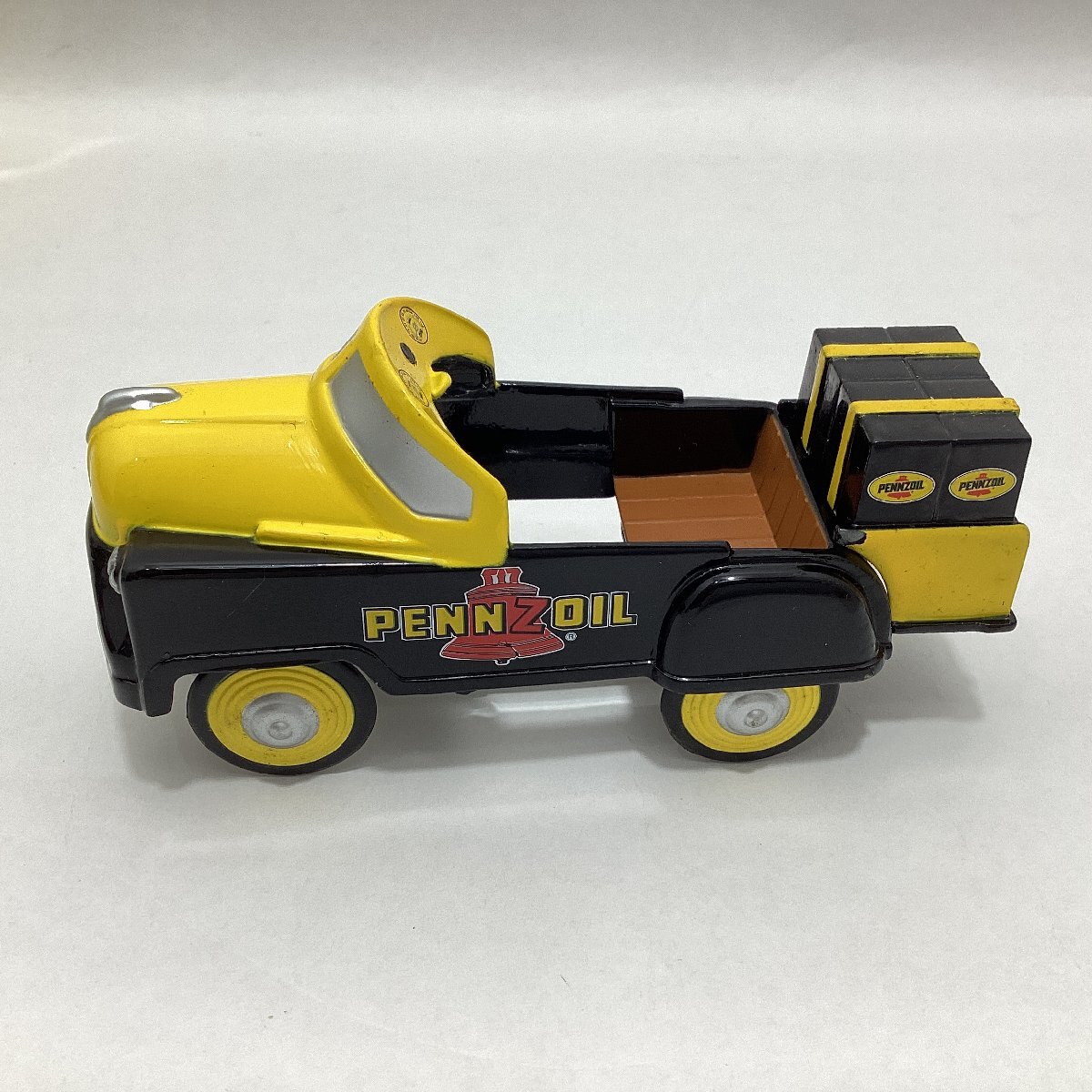 『1/10 ペンズオイル ペダルトラック』 確認のために開封して撮影しております。使用・未使用は不明です。 ブリスター箱には傷や汚れがあり、ヤケで変色しています。また、前面が大きく割れています。 車体には細かなカビ汚れのようなものが見られます。 『他ミニカー 2点』 中古品です。擦れや傷・汚れがあり、塗装剥れも見られます。 |