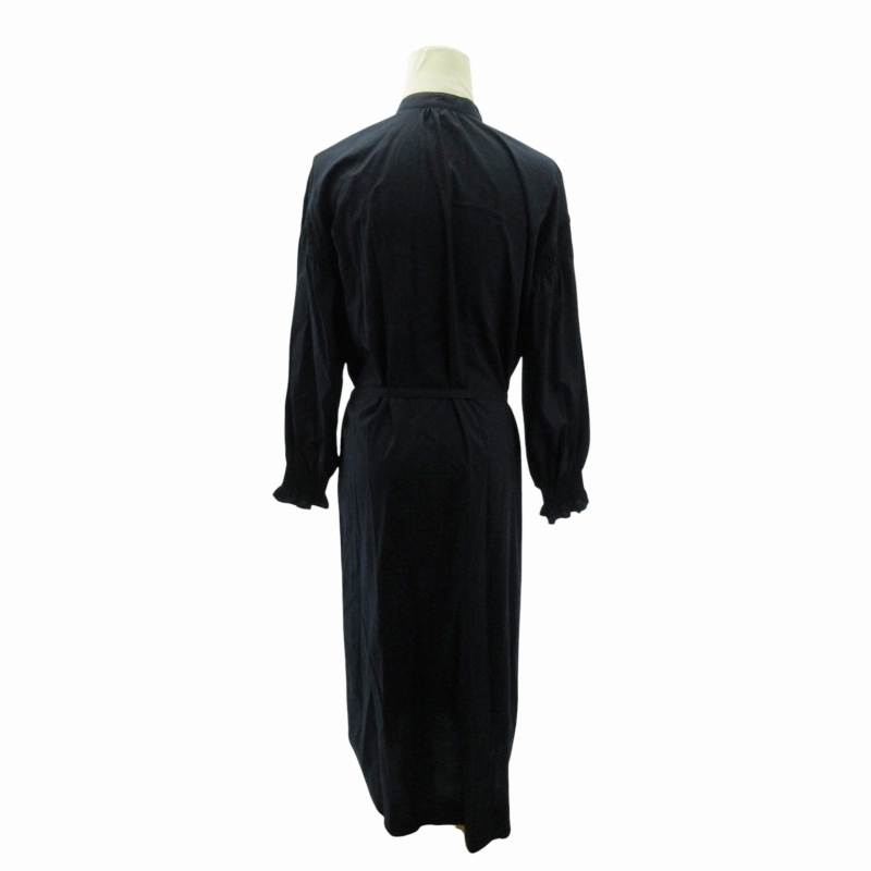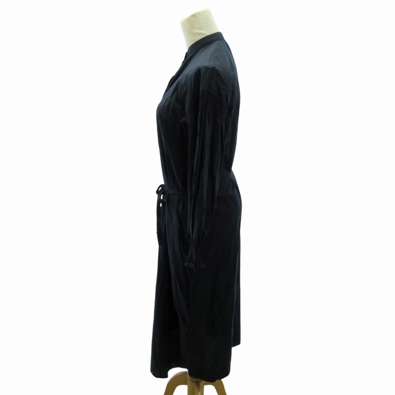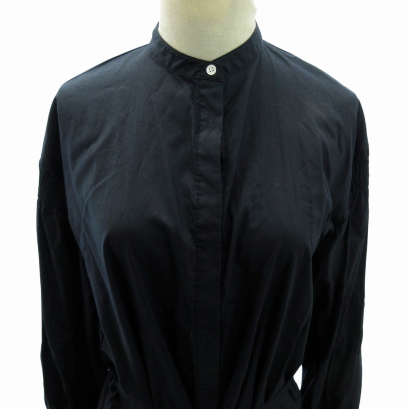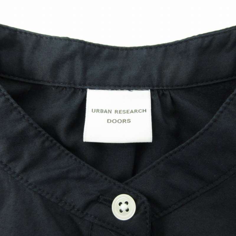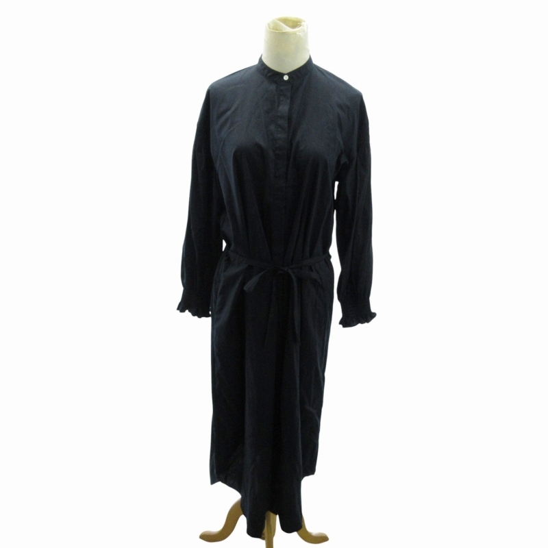 アーバンリサーチ ドアーズ URBAN RESEARCH DOORS 美品 近年 シャーリングスリーブ シャツワンピース 長袖 長袖 ロング丈 O 紺
