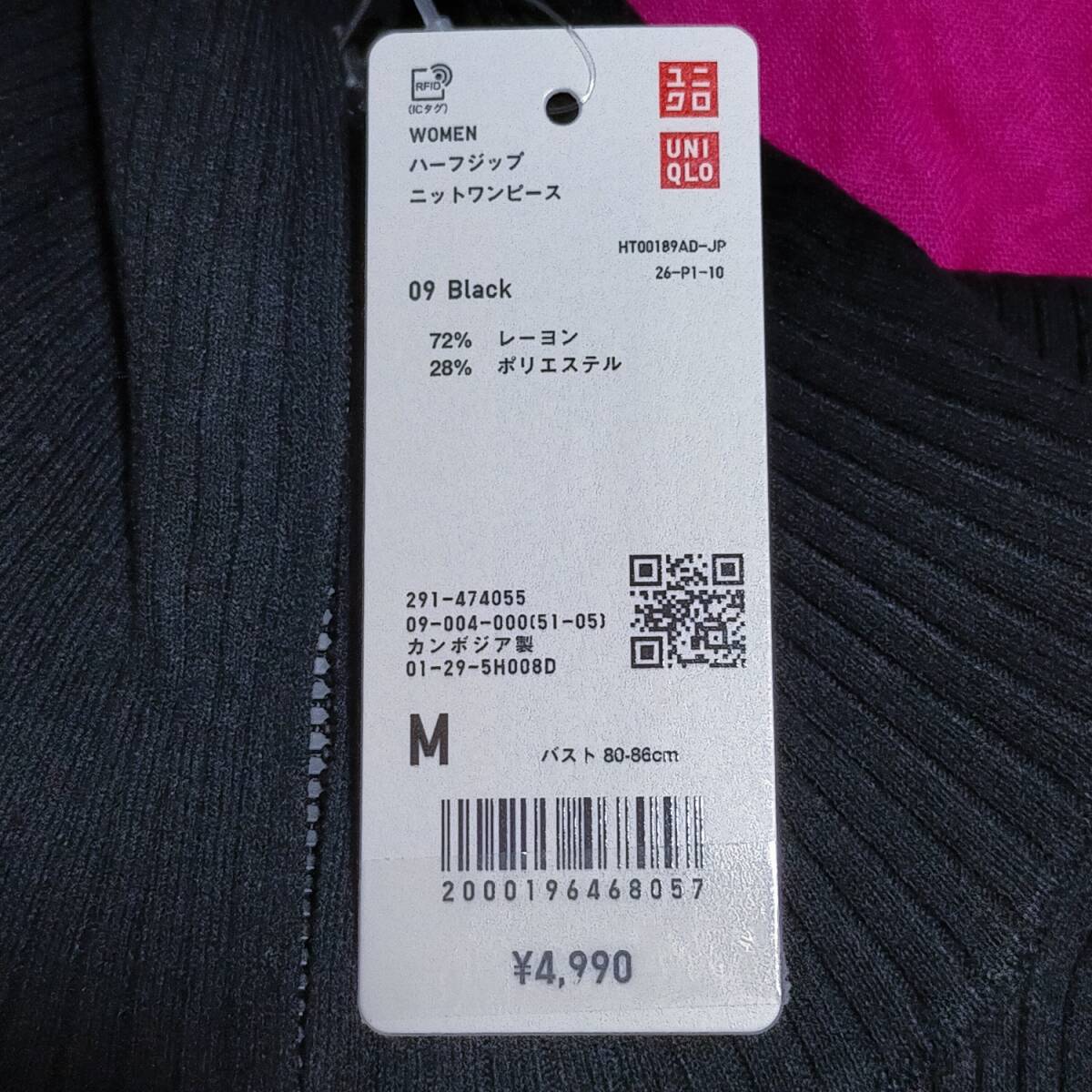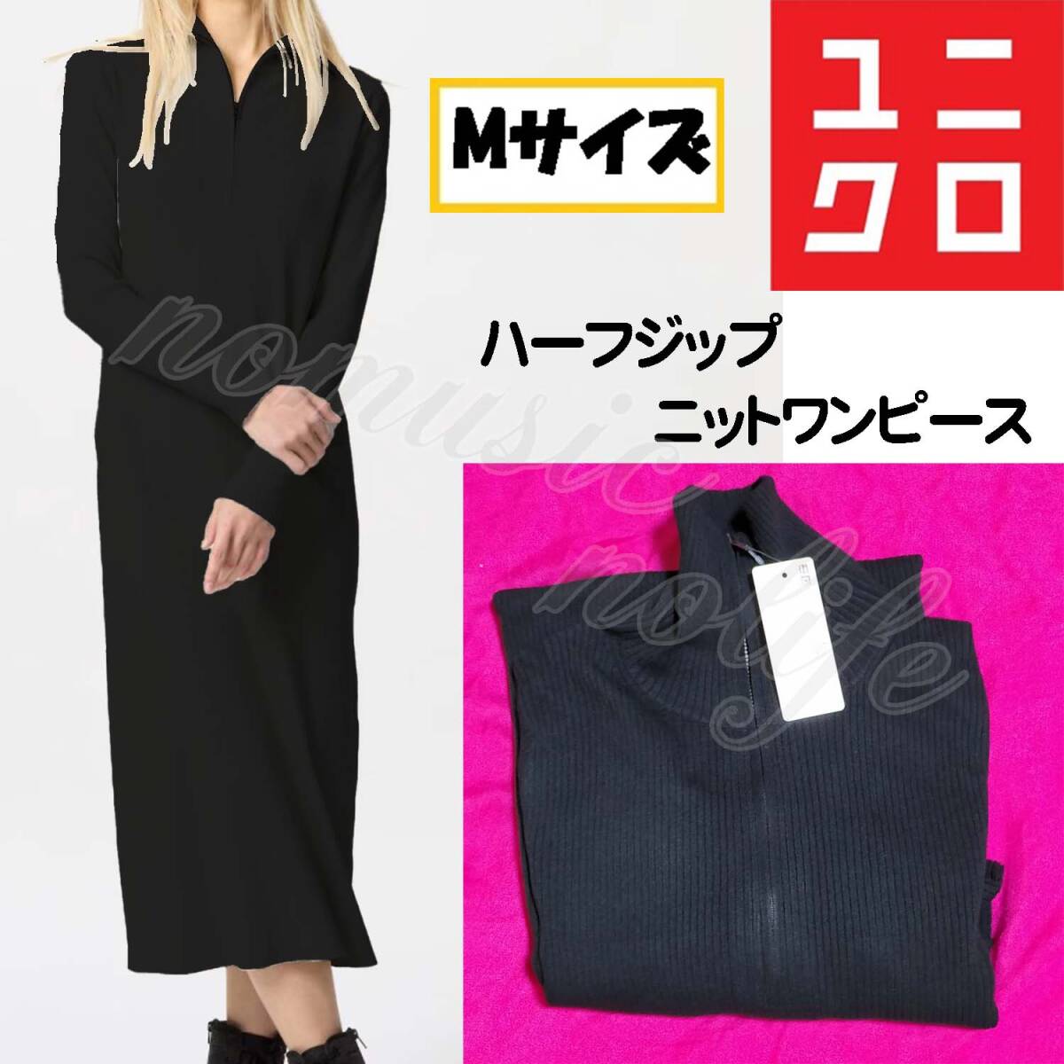 【Mサイズ】ユニクロ ハーフジップニットワンピース ブラック