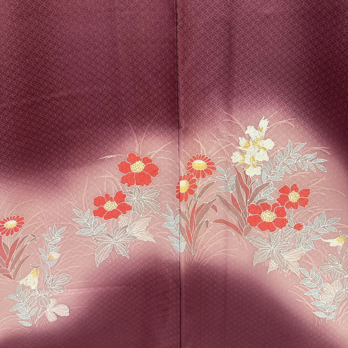 【七福】c687 付け下げ 正絹 袷仕立て 地模様 七宝 暈し染め 着物 逸品 身丈 約163cm 裄 約65cm