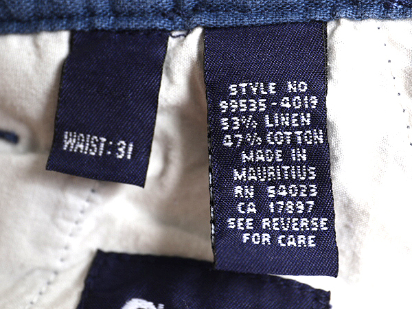 90年代のオールド デカタグ ギャップのショートパンツです。 J CREW、バナリパなどと並んで 再評価の高まる オールドギャップ の当時物 素材は、53% LINEN・47% COTTON 薄手の リネン コットン の混紡素材 肌触りが良く、吸湿性が高く、放熱性に優れ、 独特のドレープ感のあるストレスなく 履いていただける高級素材が使用されています。 フロントは、ジッパーフライYKK製ジップを使用 両サイド、バック右にポケット 合わせやすい、落ち着いたブルー 2タック入りのゆったりとしたシルエット オールドギャップ らしい高級素材でしっかりと作りこまれた 使い勝手の良いシンプルなグッドデザイン 程よいレングスで何にでも合わせやすく 様々なコーディネートに活躍する 着回しのきく、長く愛用できる商品です。 |