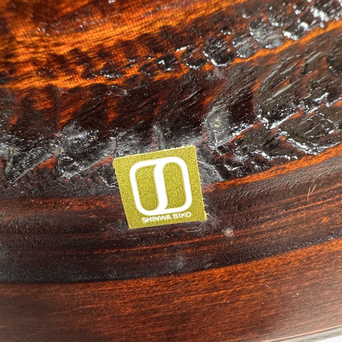 商品説明 | ご覧いただきましてありがとうございます。 商品タイトルのお品の出品になります。 よろしくお願いします。 当方、専門家ではない為、 質問に答えられない場合がございます。 ご覧いただきありがとうございます。 新和美工製の木製丸盆・盛器です。 黒地に螺旋模様の独特な意匠が施されており、縁は鮮やかな赤で縁取られた美しいデザイン。 裏面は木目が美しく、和の趣を感じる仕上げとなっています。 ■メーカー:新和美工(SHINWA BIKO) ■サイズ:直径 約36cm ■状態:大きく目立つ傷みはありませんが、保管に伴うスレなど多少ございます。画像をご確認ください。 食卓の演出、和菓子やお茶の時間のトレイ、またインテリアとしてもお使いいただけます。 和モダンな空間や茶道具・工芸品をお探しの方にもおすすめです。 ※あくまで中古品となりますので、完璧をお求めの方はご遠慮ください。 どうぞよろしくお願いいたします。 |