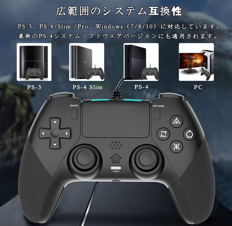 【広範囲互換性】PS-3、PS-4 /Slim/Pro、Windowsに対応しています。 最新のPS-4システムバージョンにも適用されます。STEAMなどでの使用をサポートしています。コントローラーの背面に小さな穴(リセットキー)があります。