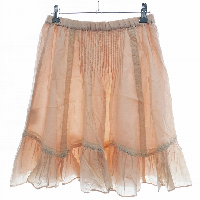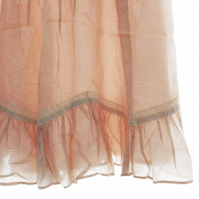 シンシアローリー CYNTHIA ROWLEY フレアスカート ひざ丈 プリーツ ウエストゴム コットン レース 2 ピンク ボトムス レディース
