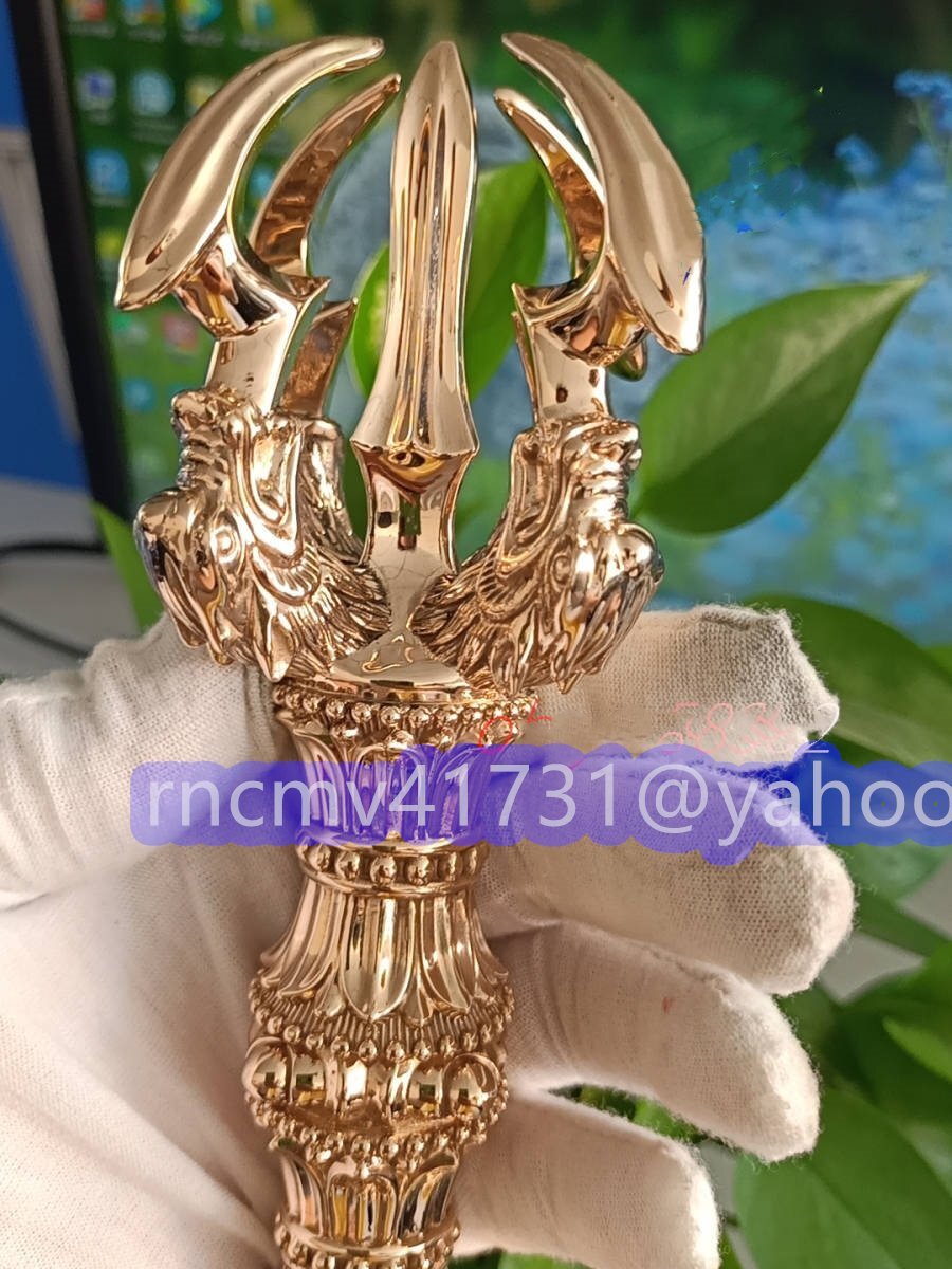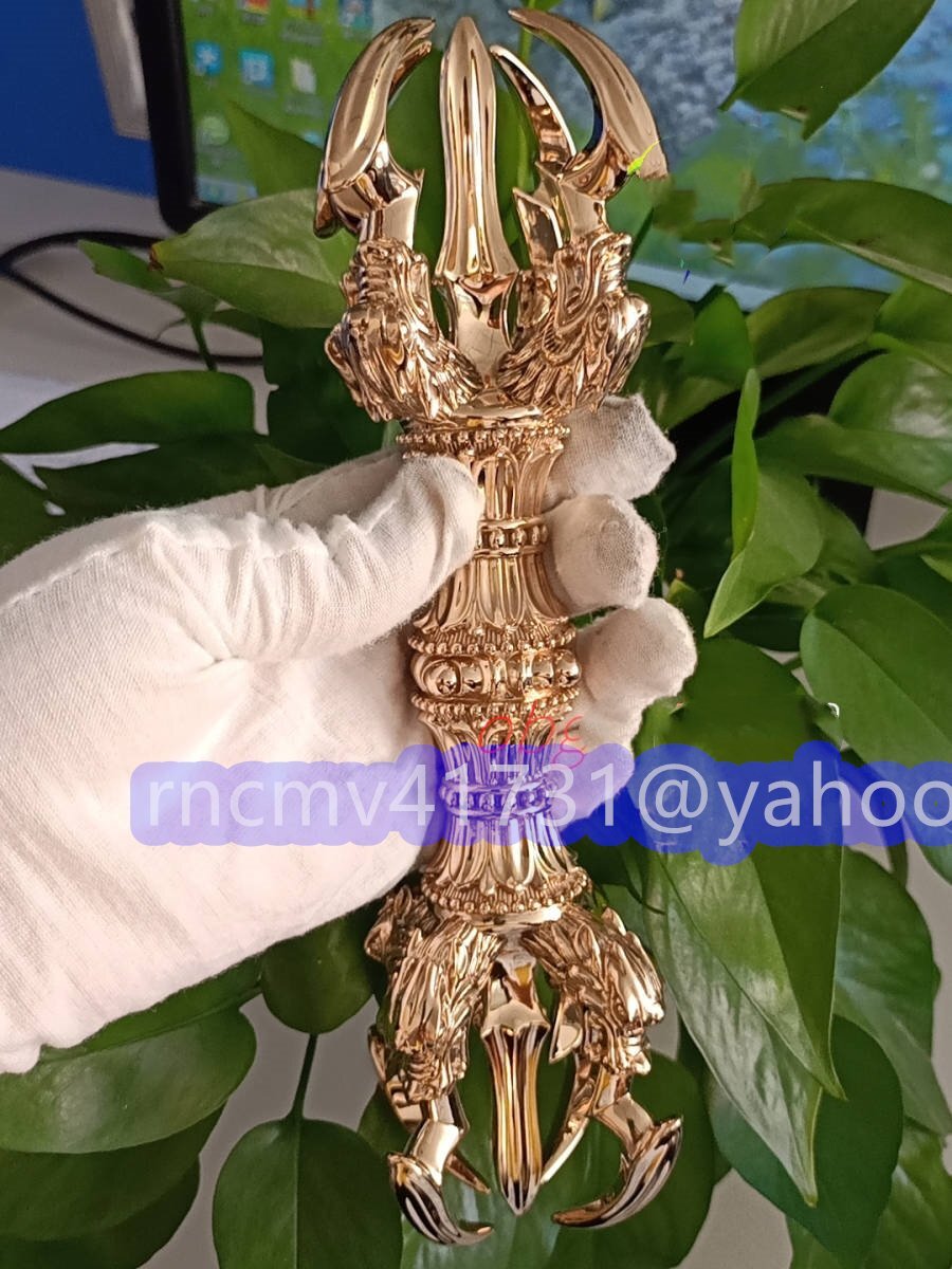 「81SHOP」密教法具 寺院用仏具★ 唐型 五鈷杵 響銅製磨き仕上げ 22cm 800g