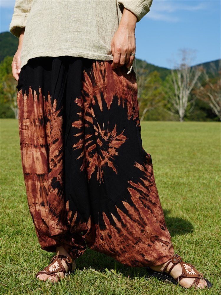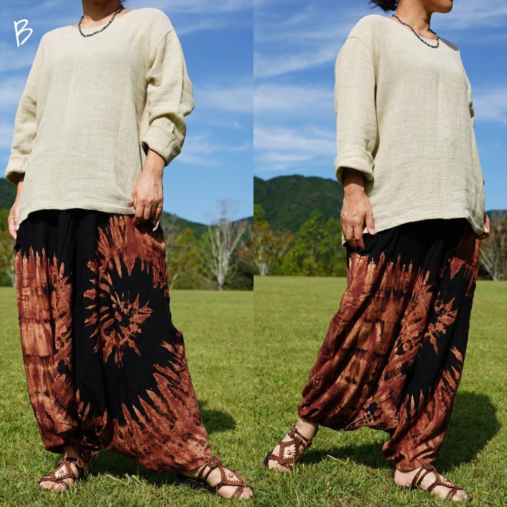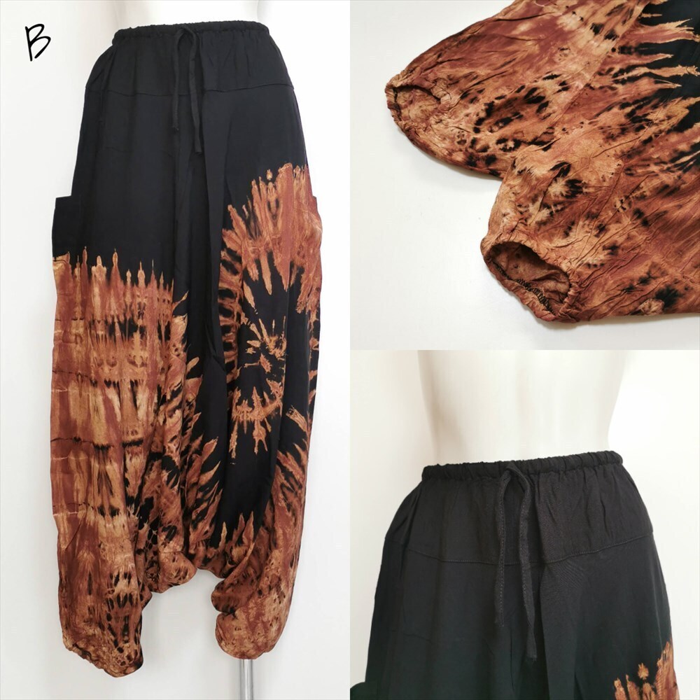 ★エスニック サルエルパンツ タイダイ ポケット有り 送料込★新品未使用B★アジアン レーヨン素材 透け感無し サルエル ユニセックス