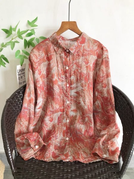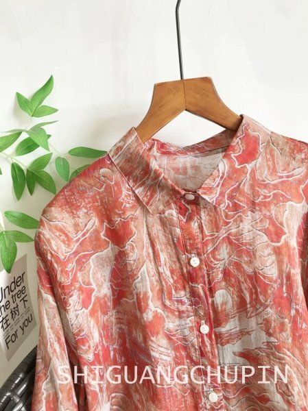 sg 2507 フリーサイズ ワイシャツ チュニック トップス 麻100% 大人可愛 ナチュラル サラサラ 通気性肌触り抜群 オシャレ プリント花柄14