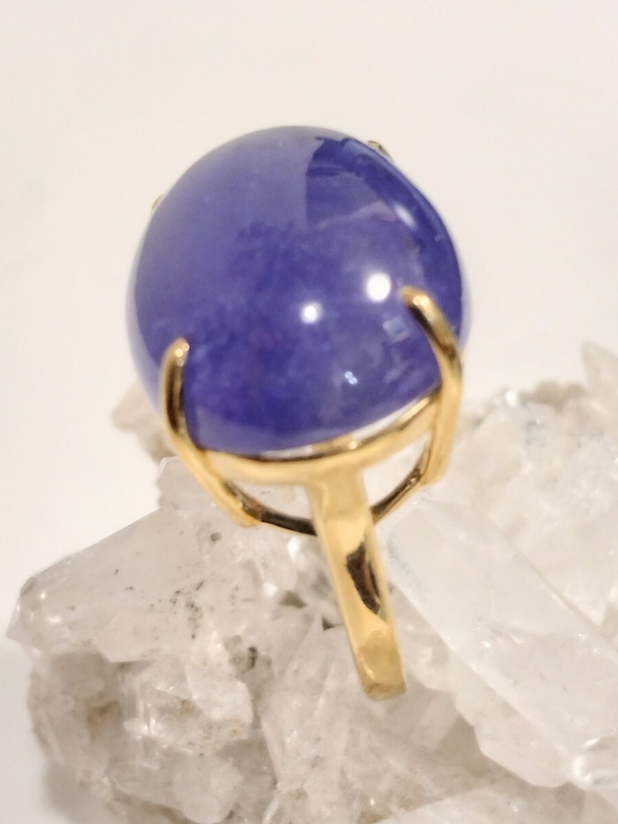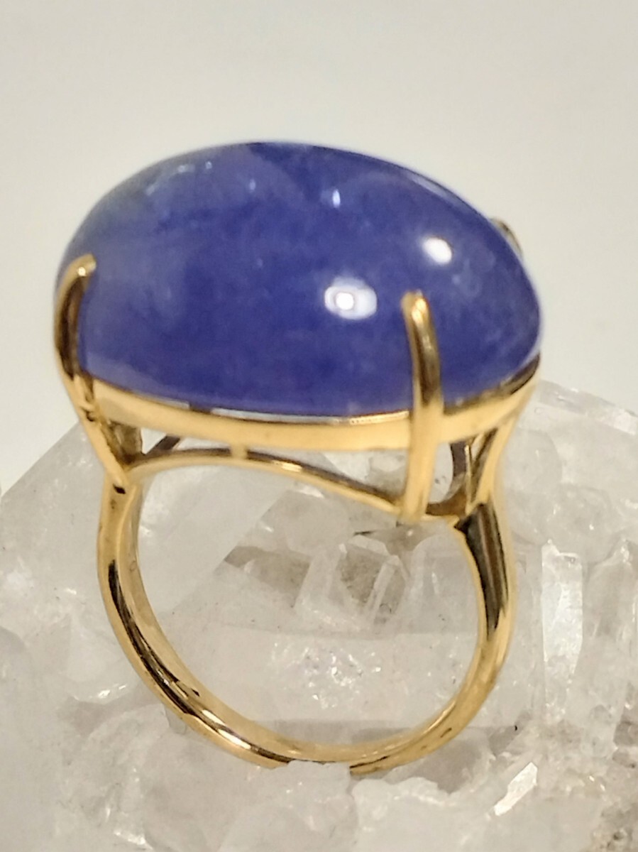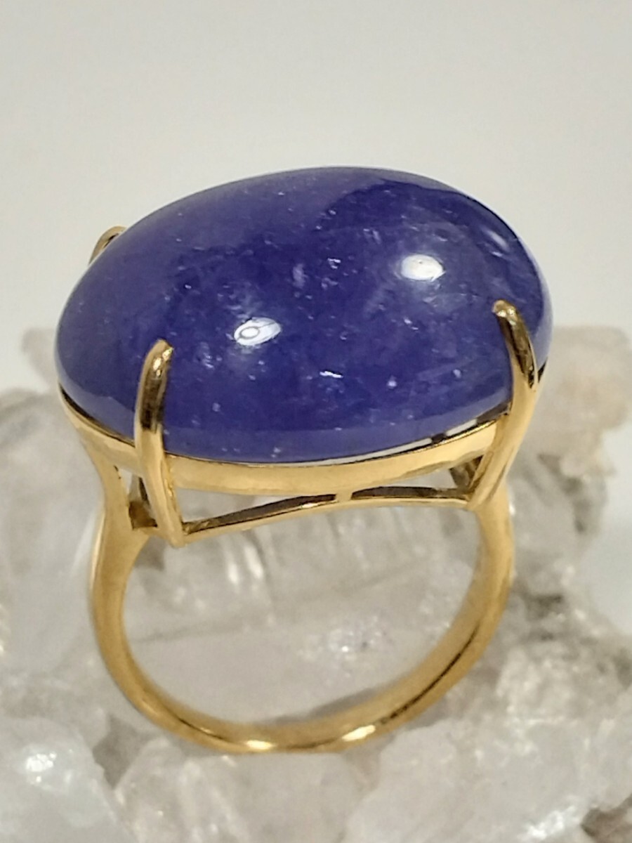 このリングには、深い紫色のタンザナイトが使用されています。高品質な宝石で、特にその色合いが魅力的です。